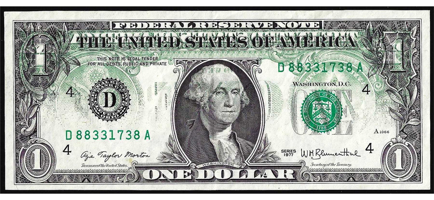 One 1977 $1 Federal Reserve Note Partial Offset Error.