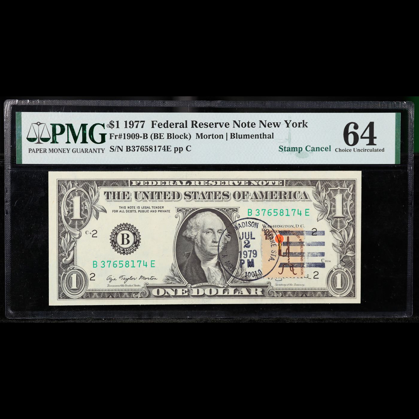 1977 $1 Federal Reserve Note Signatures of Morton & Blumenthal FR1909-B Grades Choice CU.