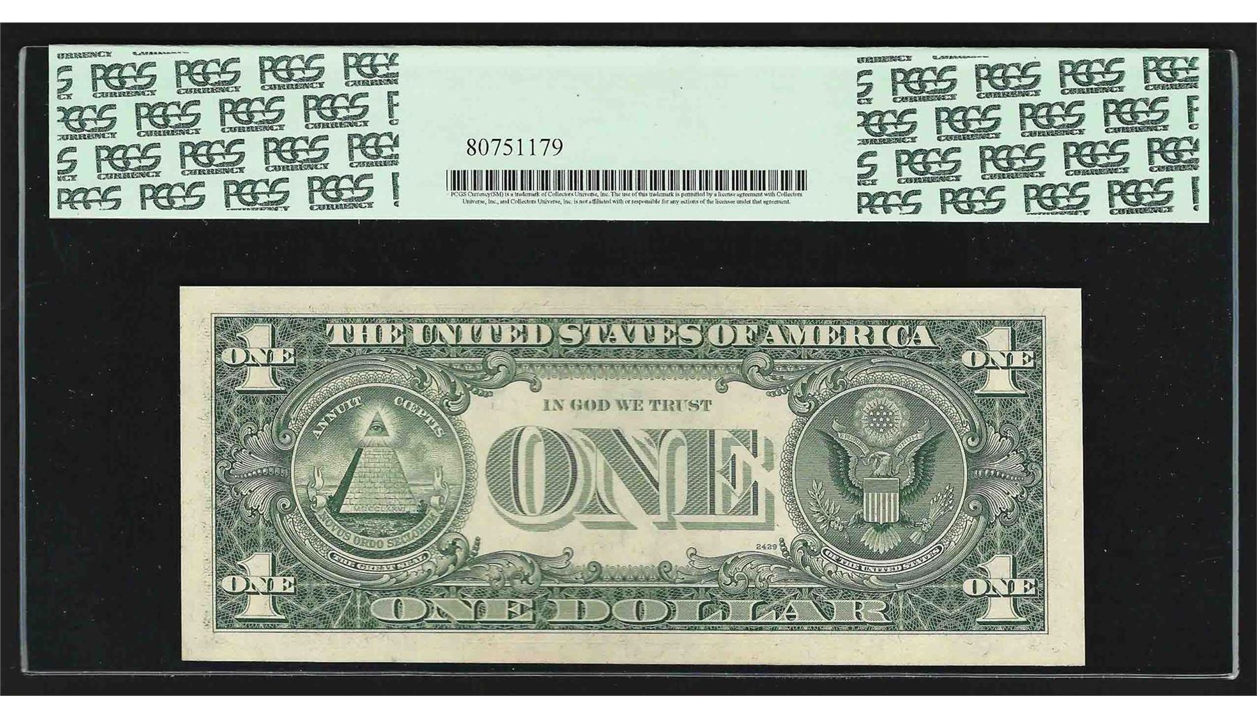 One 1977 $1 Federal Reserve Note Solid Serial Number PCGS Choice New 63. PCGS Graded.