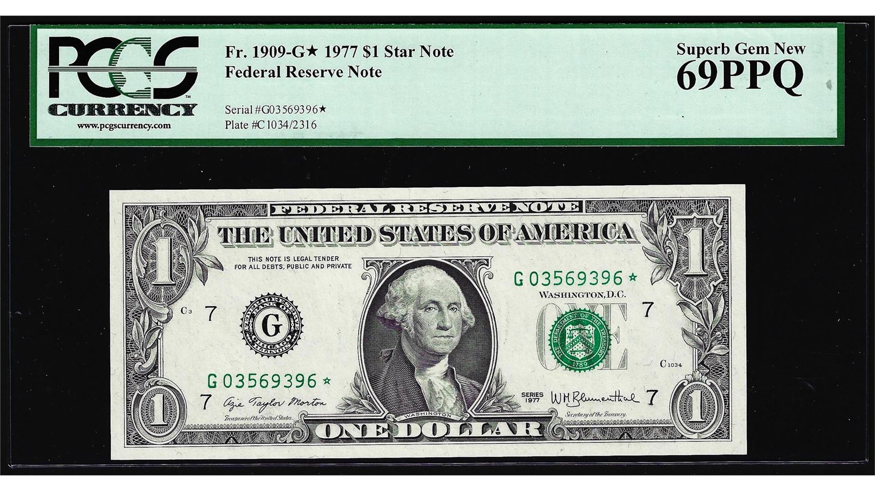 1977 $1 Federal Reserve STAR Note Fr.1909-G* PCGS Superb Gem New 69PPQ