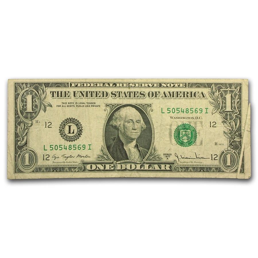One 1977 $1 Gutter Fold Error San Francisco Federal Reserve Note .