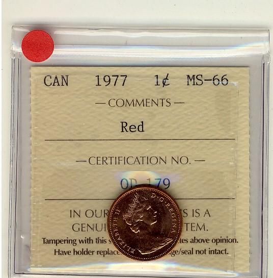 1977 1¢ ICCS MS66 Full Red, A superb GEM example.