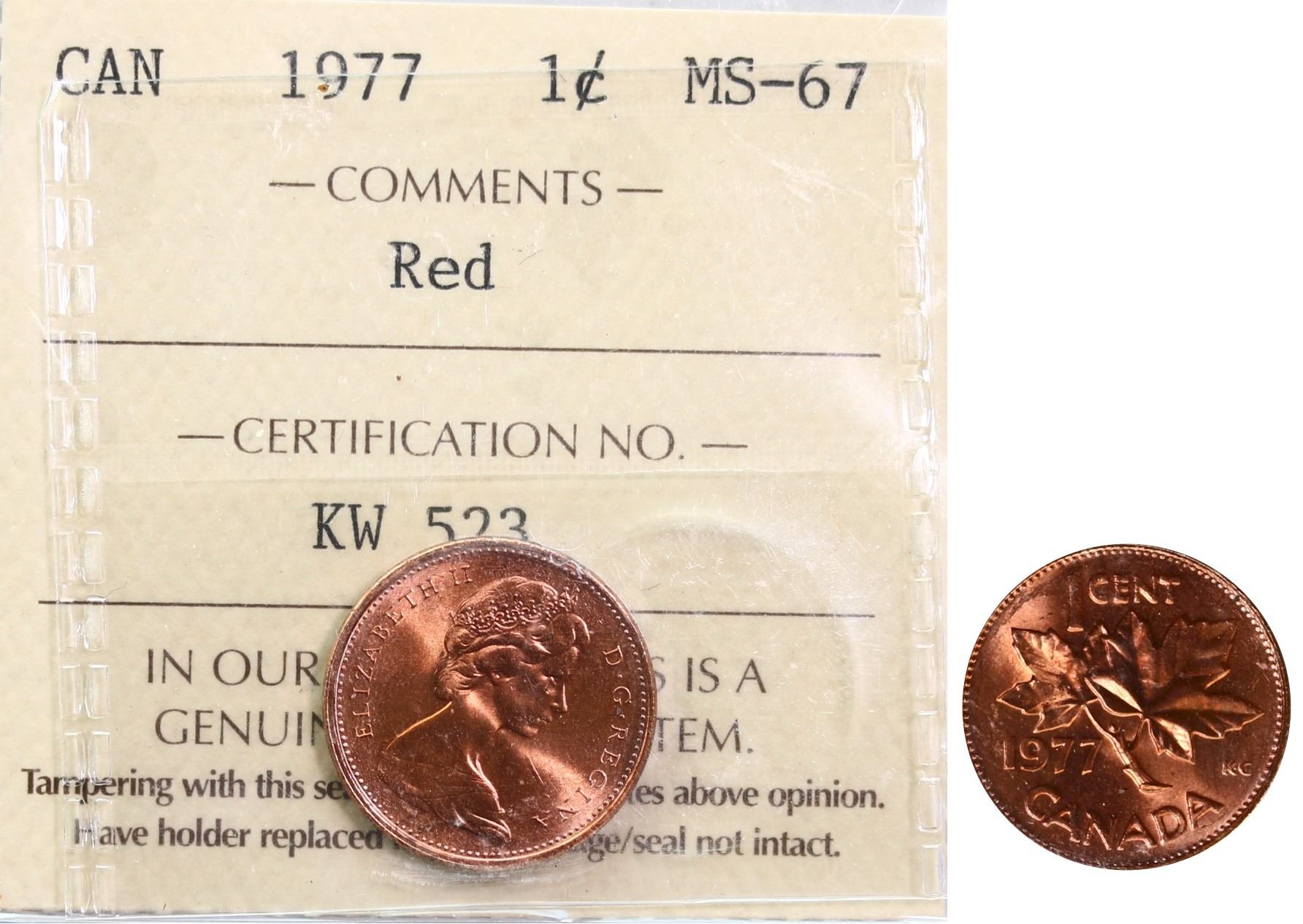 1977 1¢ ICCS Superb Gem Mint State-67 Full red.