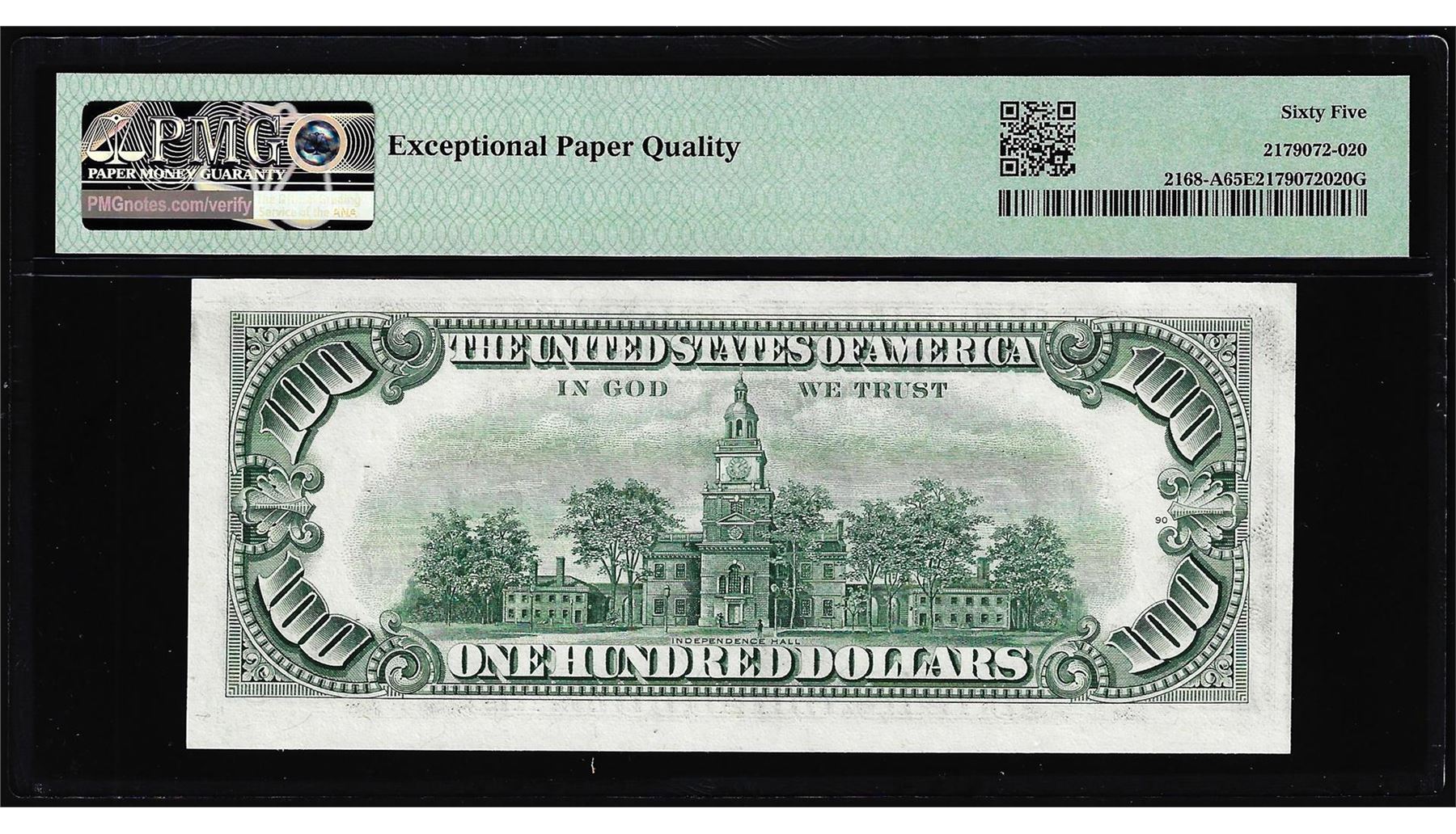 One 1977 $100 Federal Reserve Note Boston Fr.2168-A PMG Gem Uncirculated 65EPQ. PMG Certified.