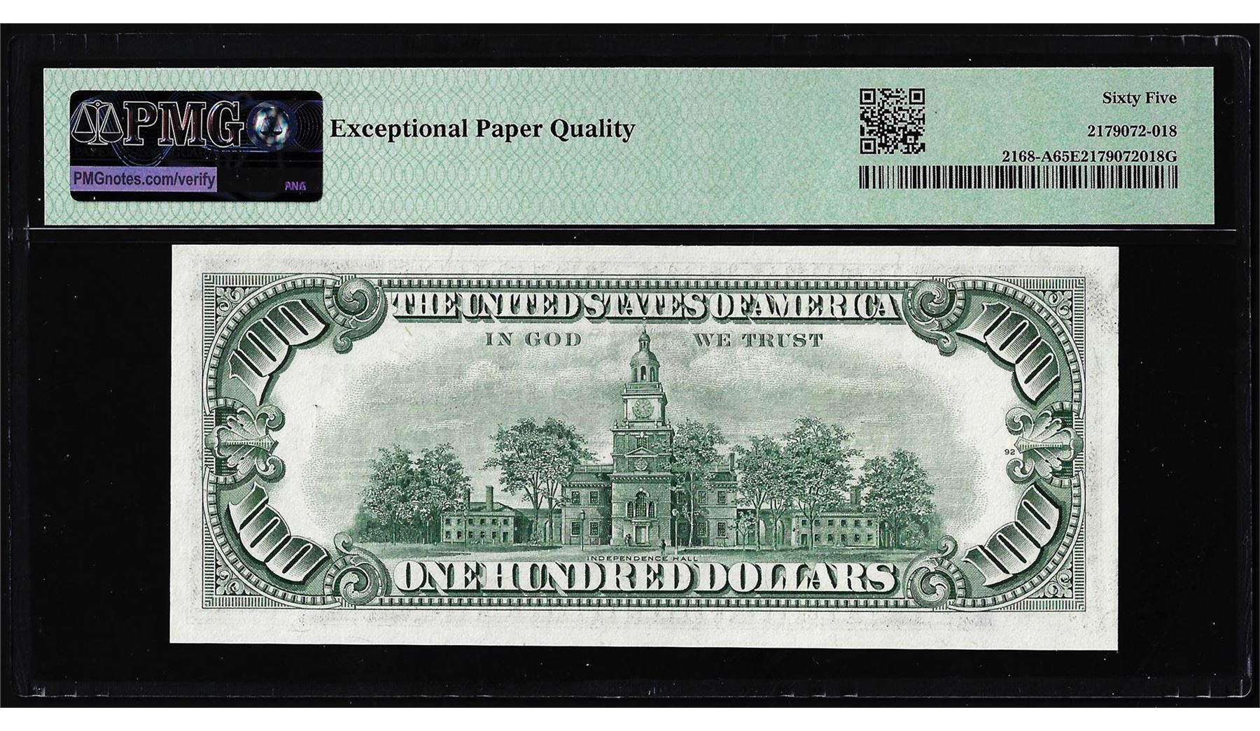 1977 $100 Federal Reserve Note Boston Fr.2168-A PMG Gem Uncirculated 65EPQ