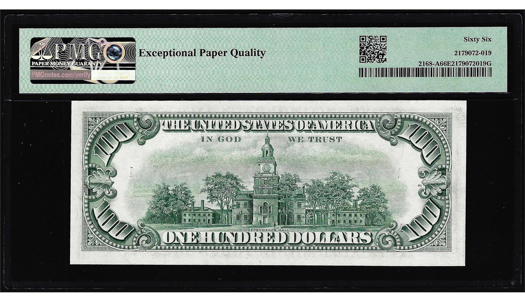 1977 $100 Federal Reserve Note Boston Fr.2168-A PMG Gem Uncirculated 66EPQ