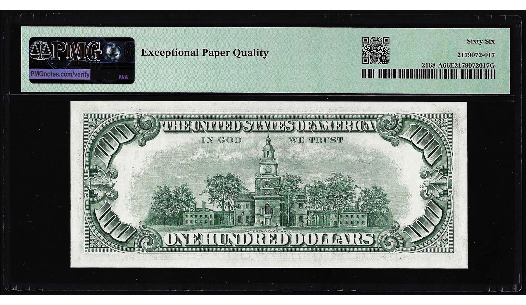 1977 $100 Federal Reserve Note Boston Fr.2168-A PMG Gem Uncirculated 66EPQ