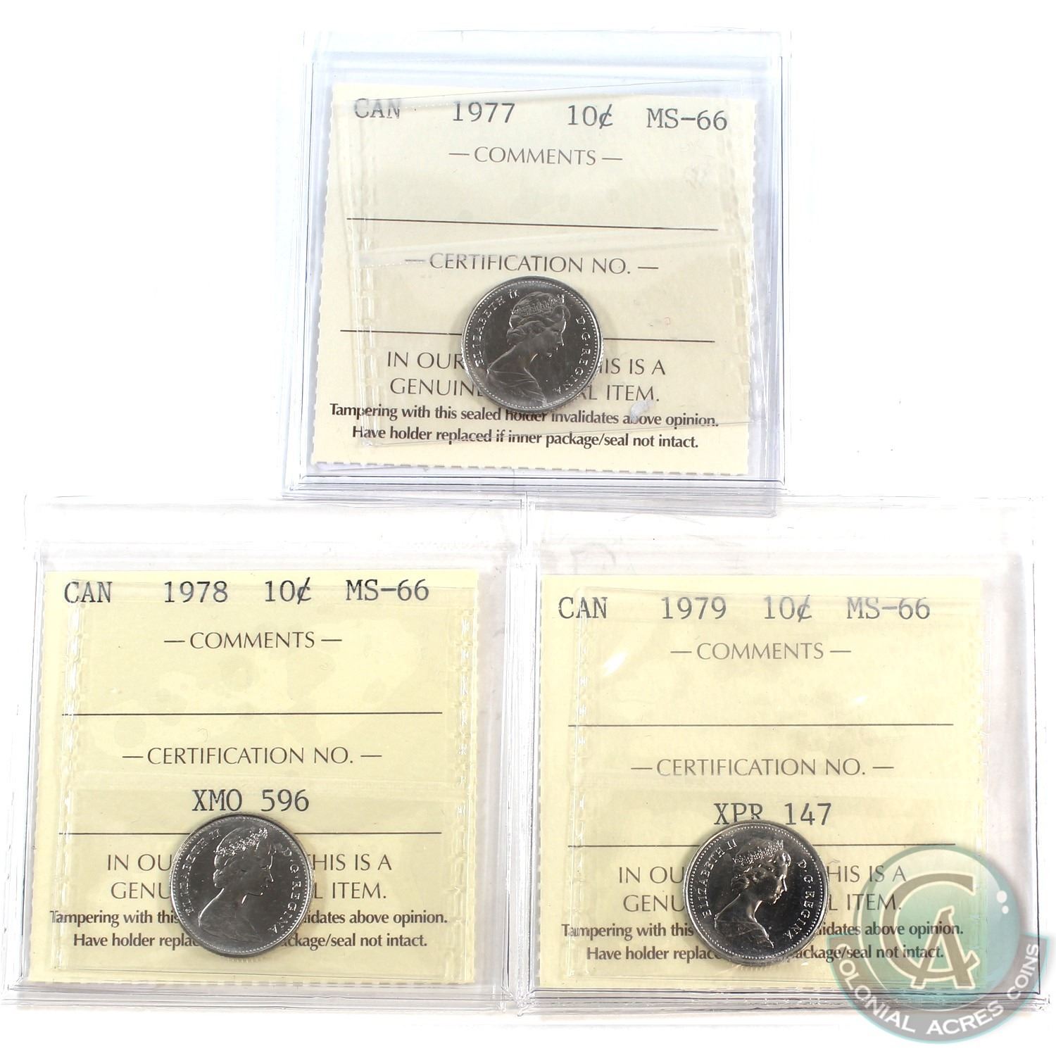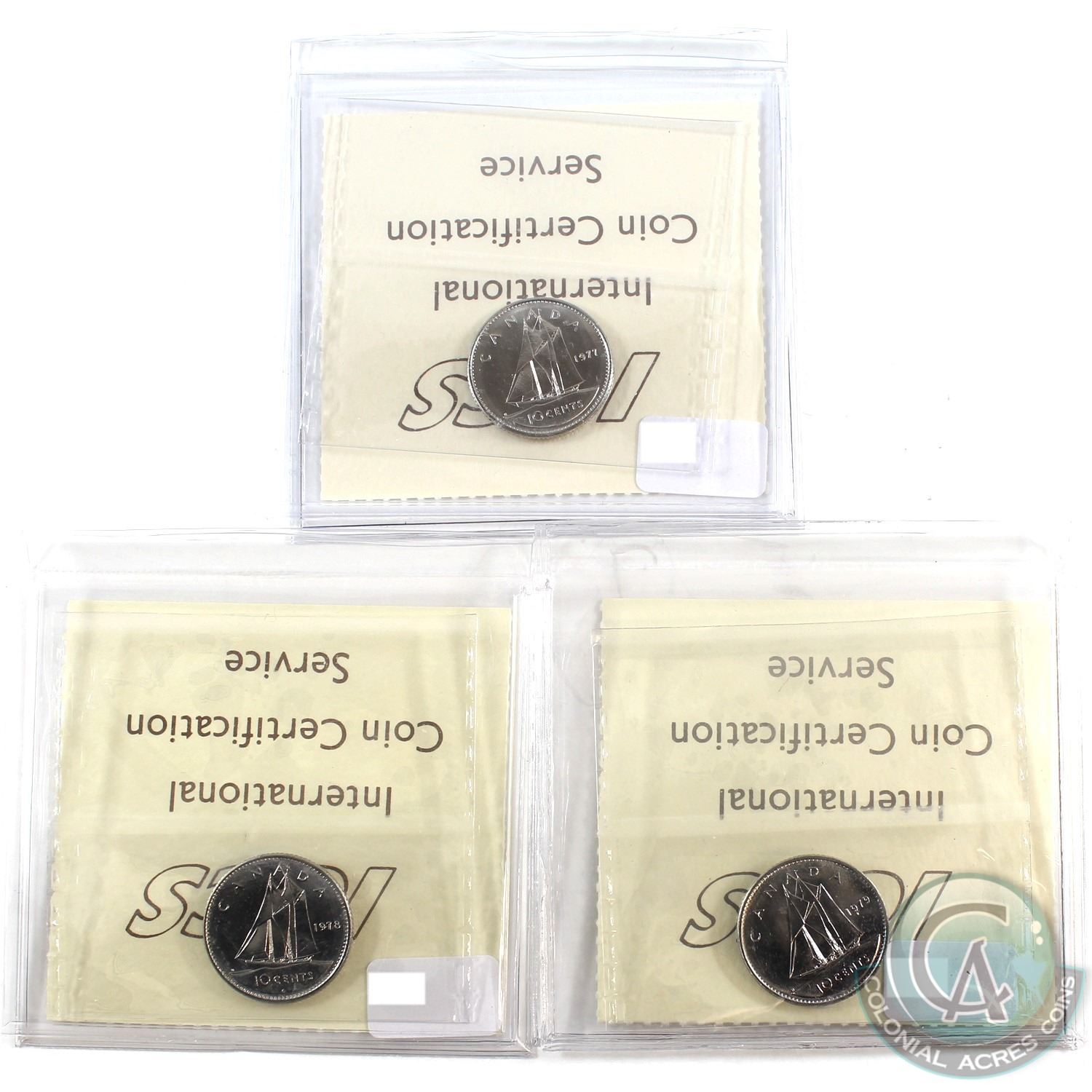 1977,1978 & 1979 Canada 10-cent ICCS Ceritified MS-66. 3pcs