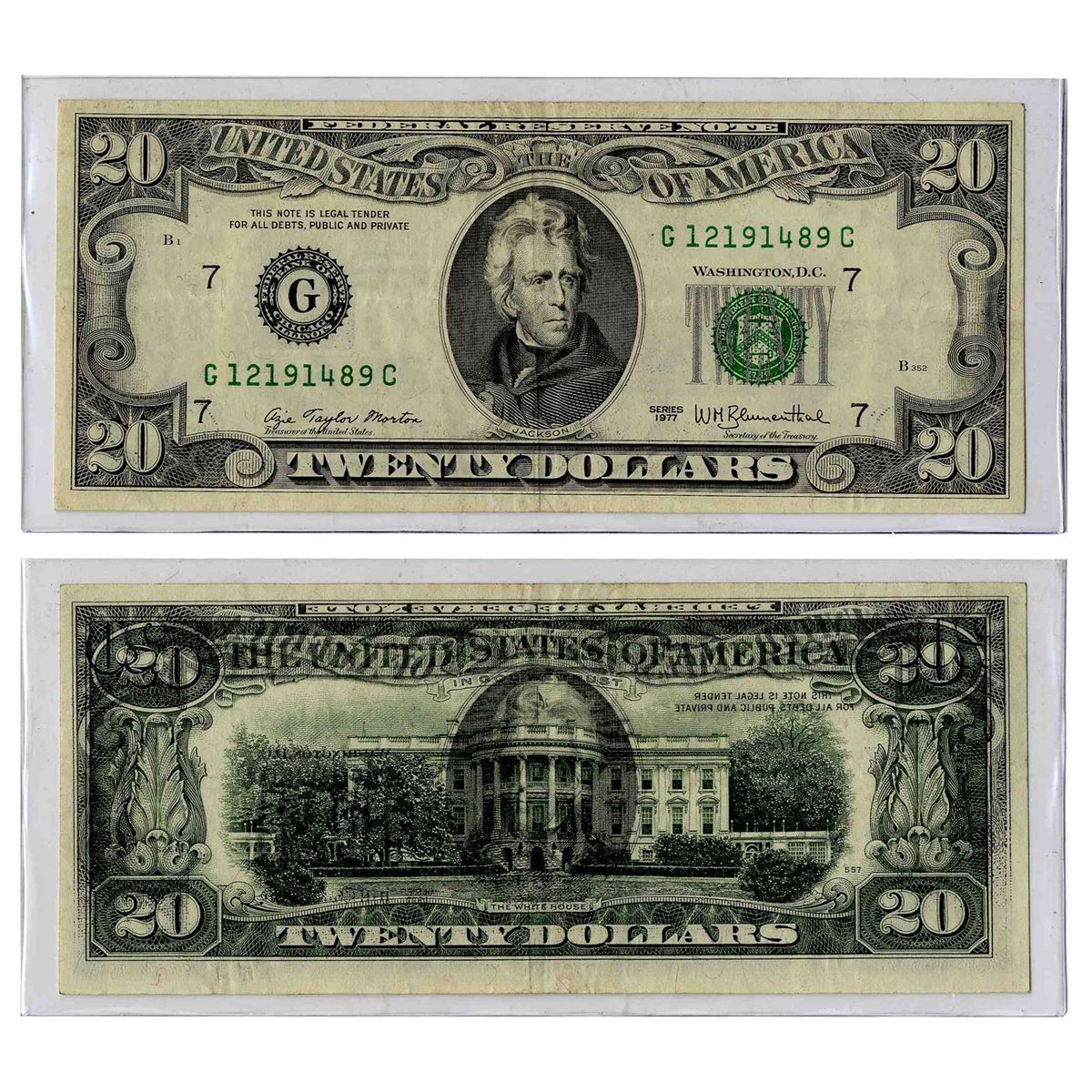 $20 Federal Reserve Error Note -- Series 1977, Chicago -- Full Face to Back Off-Set Printing Error -- Dark Ink to Verso