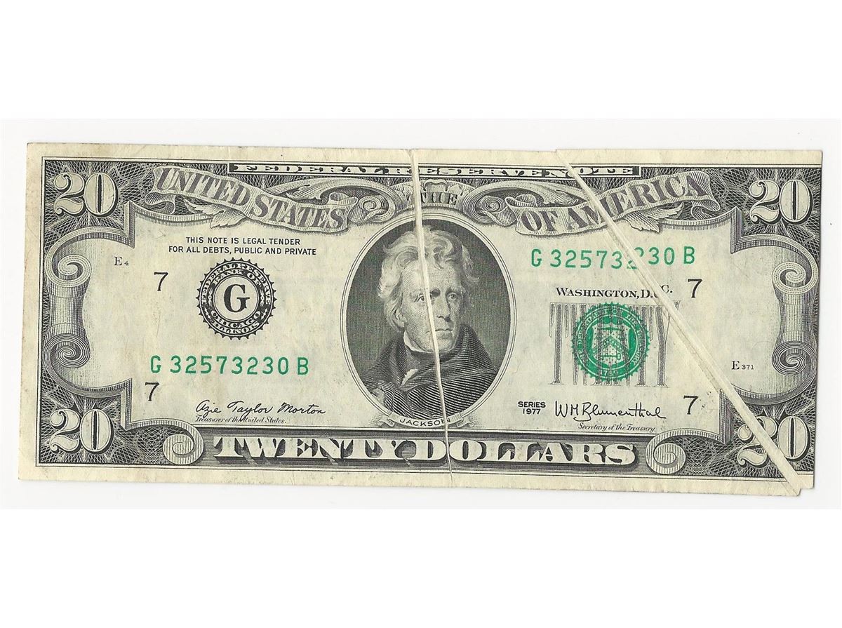 One 1977 $20 Federal Reserve Note Double Gutterfold ERROR.