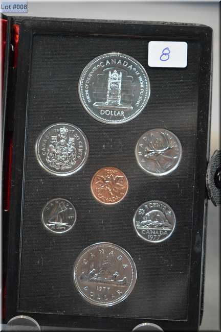 1977 25th anniversary set with commermorative silver dollar depicting the throne of the senate of Canada with double dollars and case
