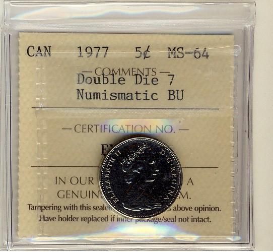 1977 5¢ Double Die 7 ICCS MS64 Numismatic Bu