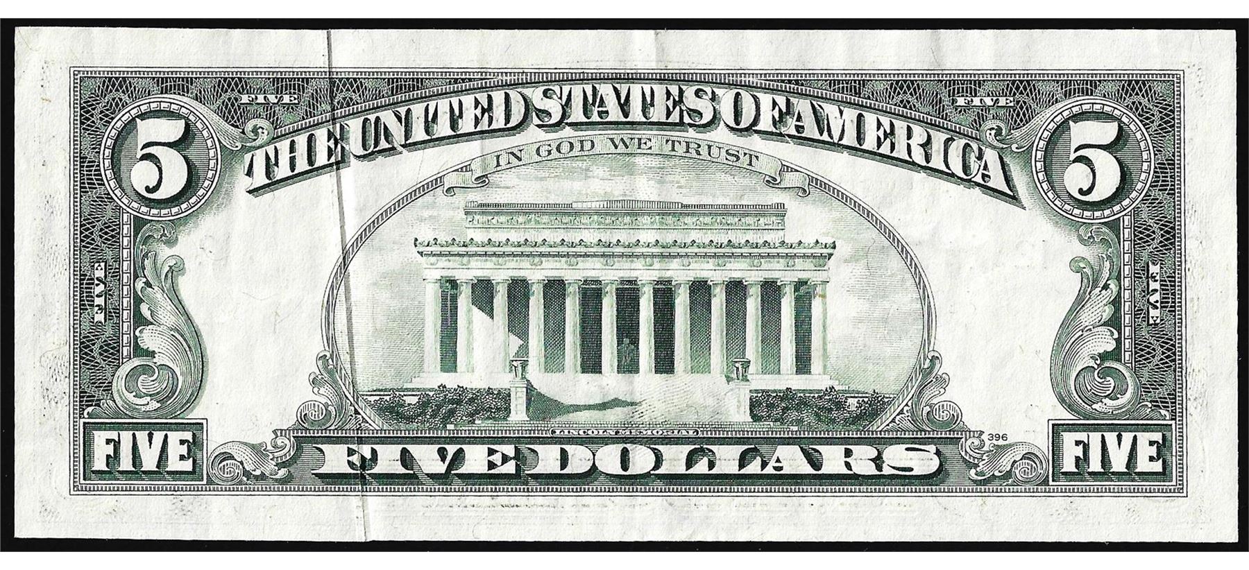 One 1977 $5 Federal Reserve Gutter fold Error Note San Francisco.