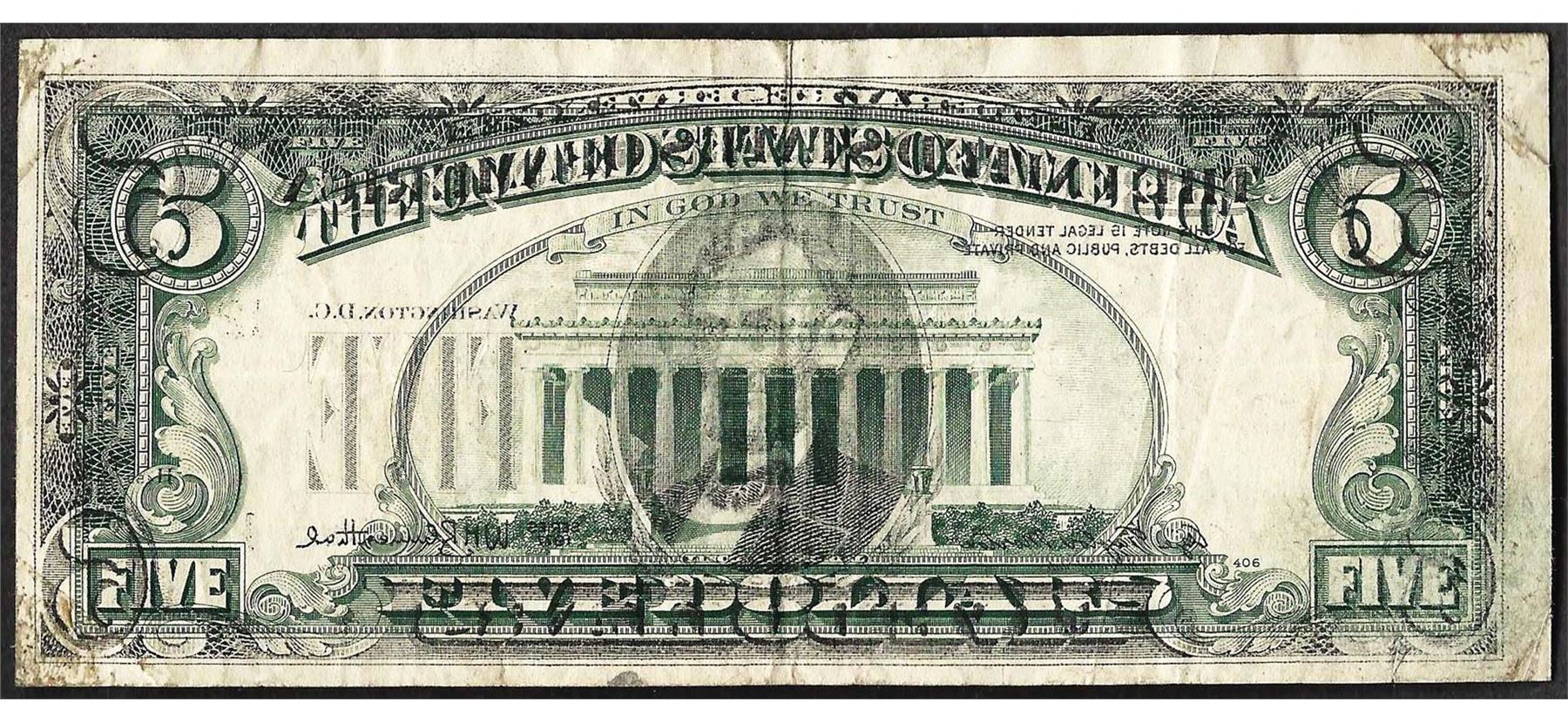 One 1977 $5 Federal Reserve Note Full Offset ERROR.