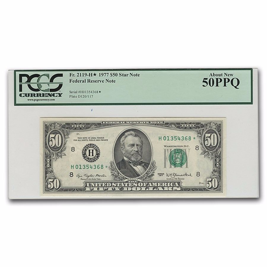 One 1977 $50 Star Federal Reserve Note PCGS 50PPQ.