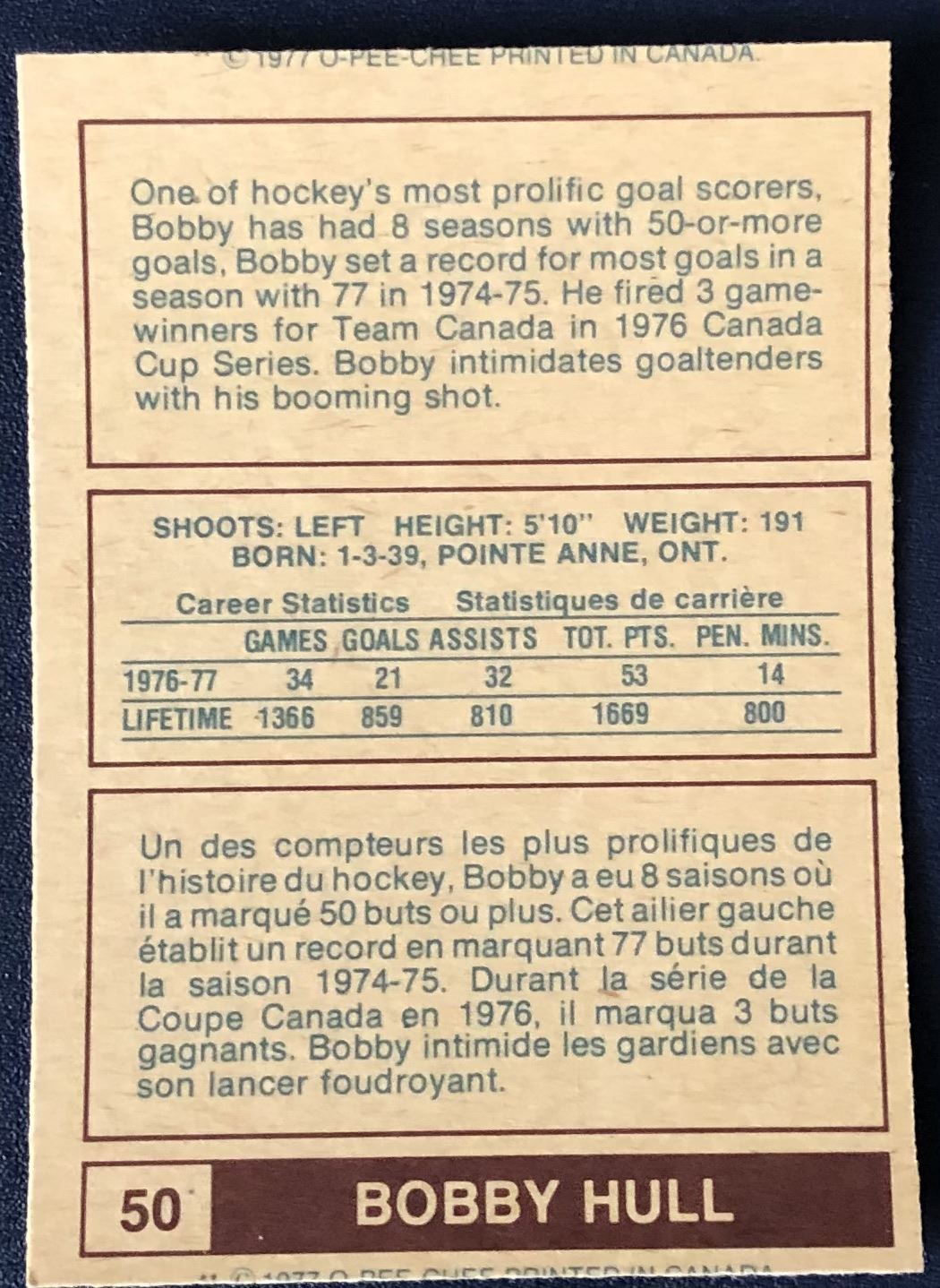 Card #50 WHA, hockey, vintage, OPC, hall of fame