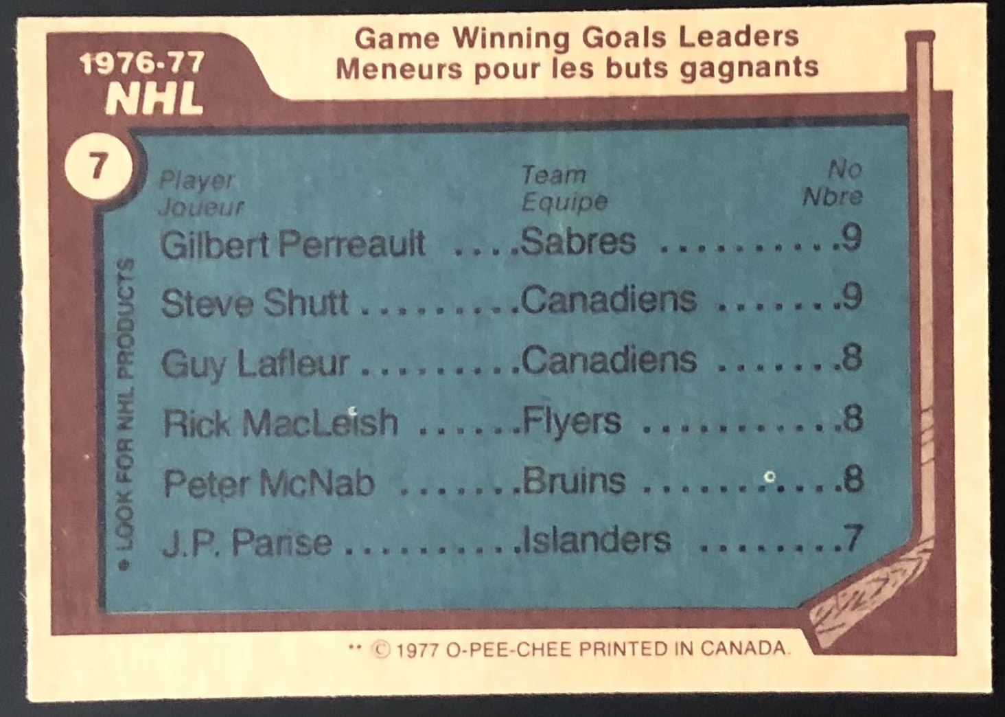 Card #7 NHL, hockey, vintage, OPC, hall of fame