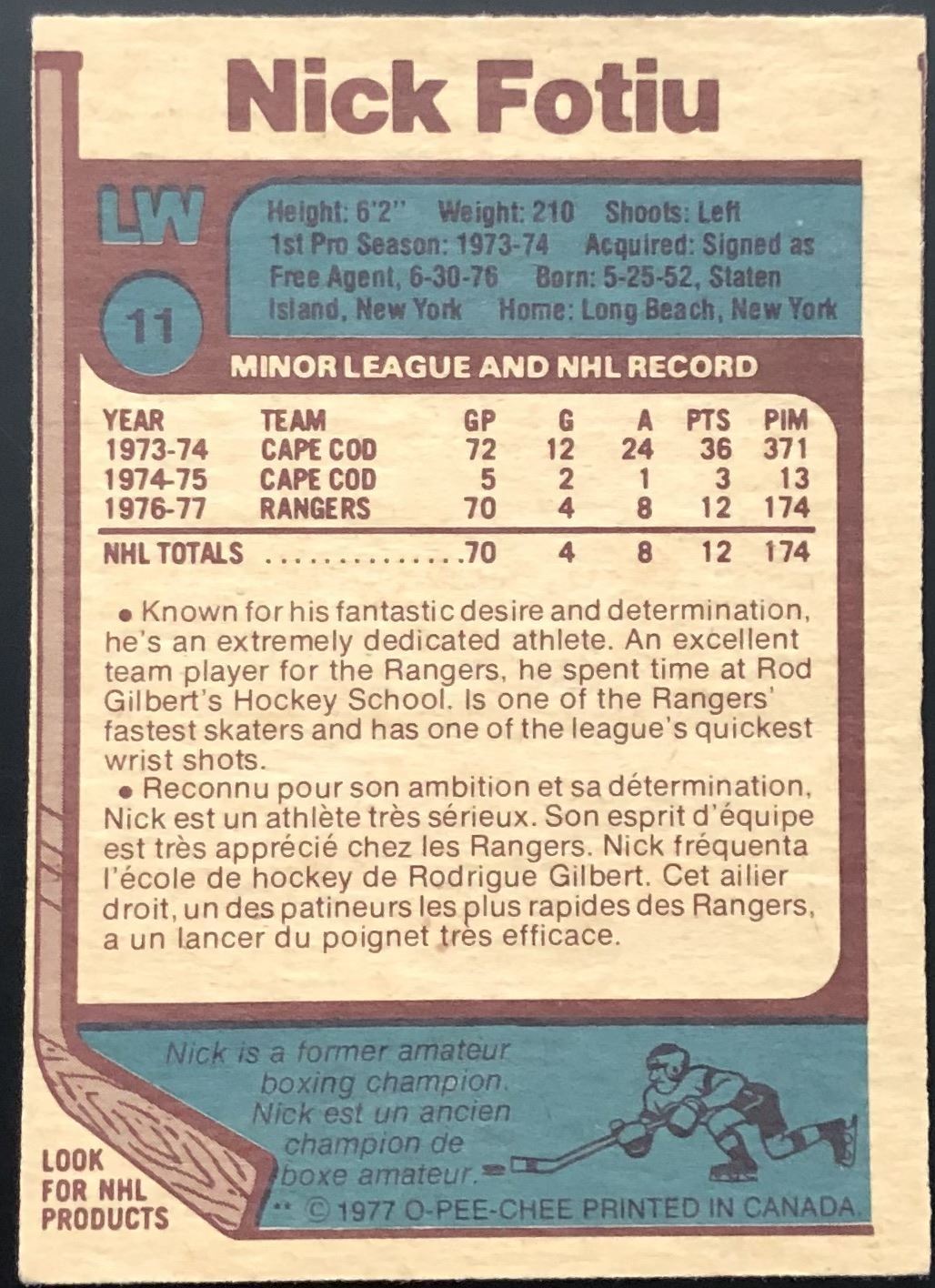 Card #11 NHL, hockey, vintage, OPC, rookie