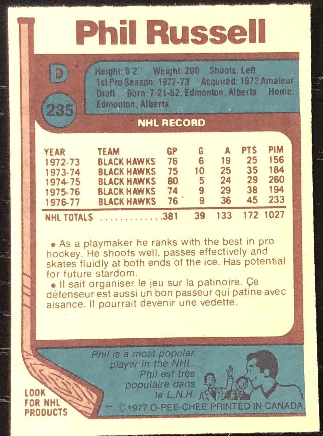 Card #235 OPC, NHL, hockey, vintage