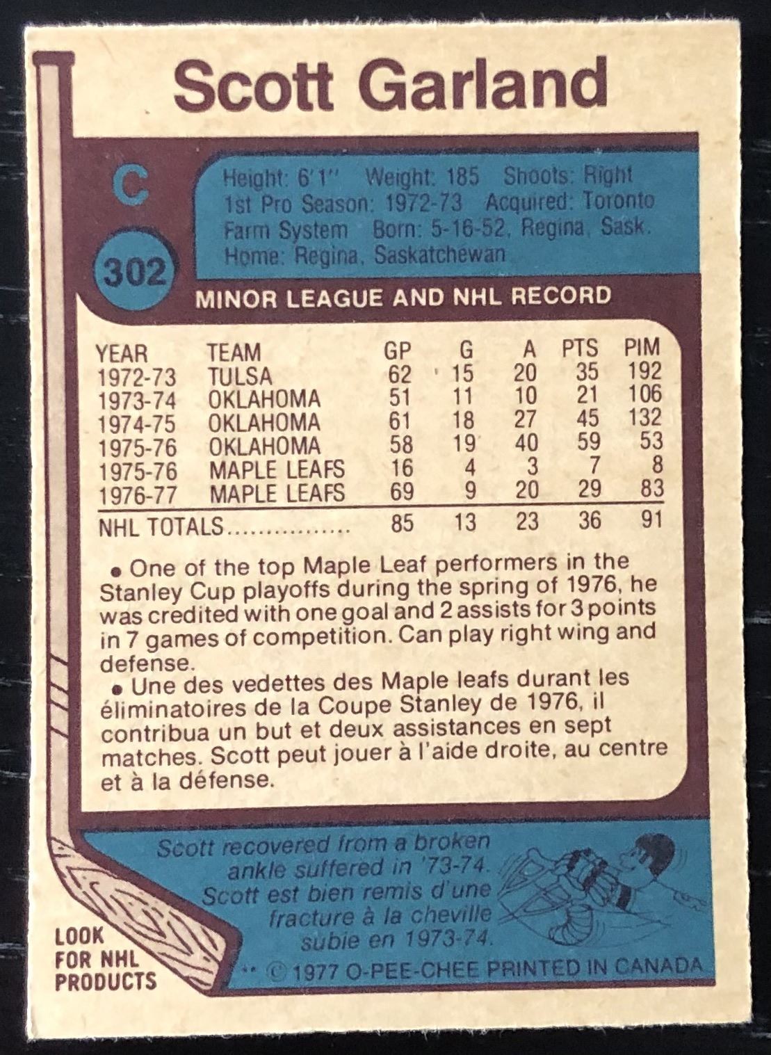 Card #302 OPC, NHL, hockey, vintage, rookie