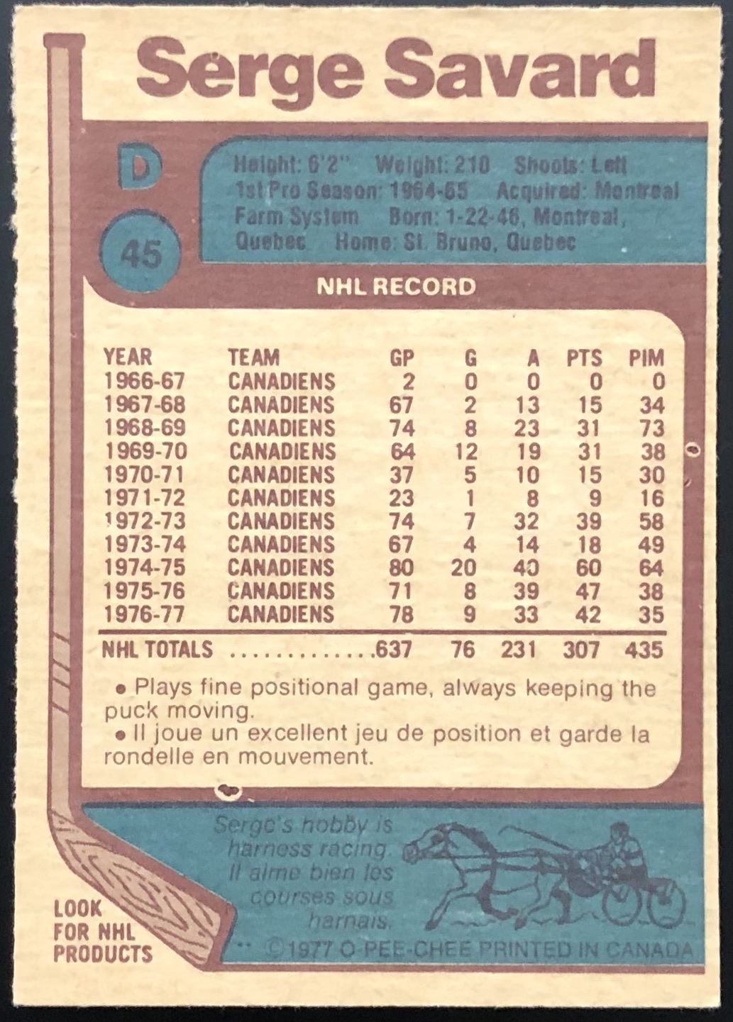 Card #45 NHL, hockey, vintage, OPC, hall of fame