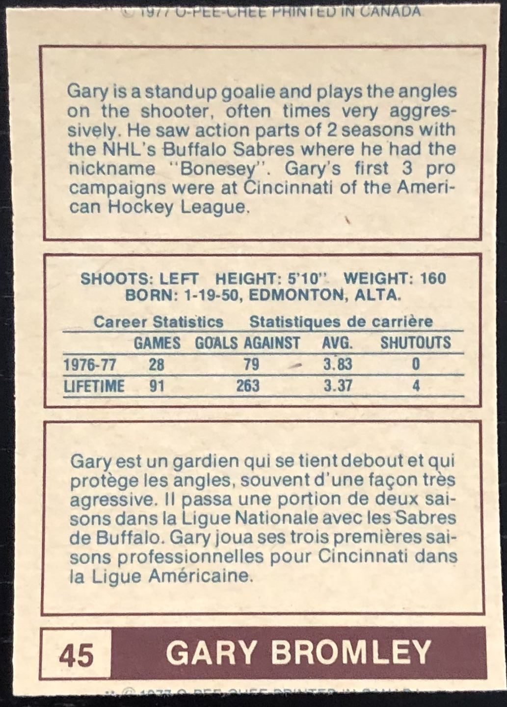 Card #45 hockey, WHA, vintage