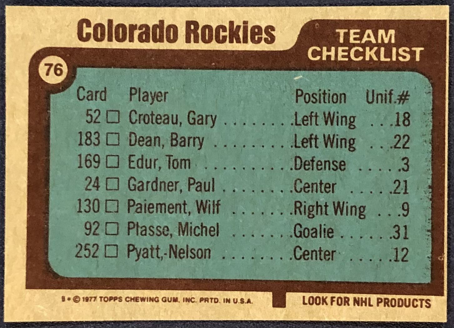 Card #76 NHL. hockey, vintage