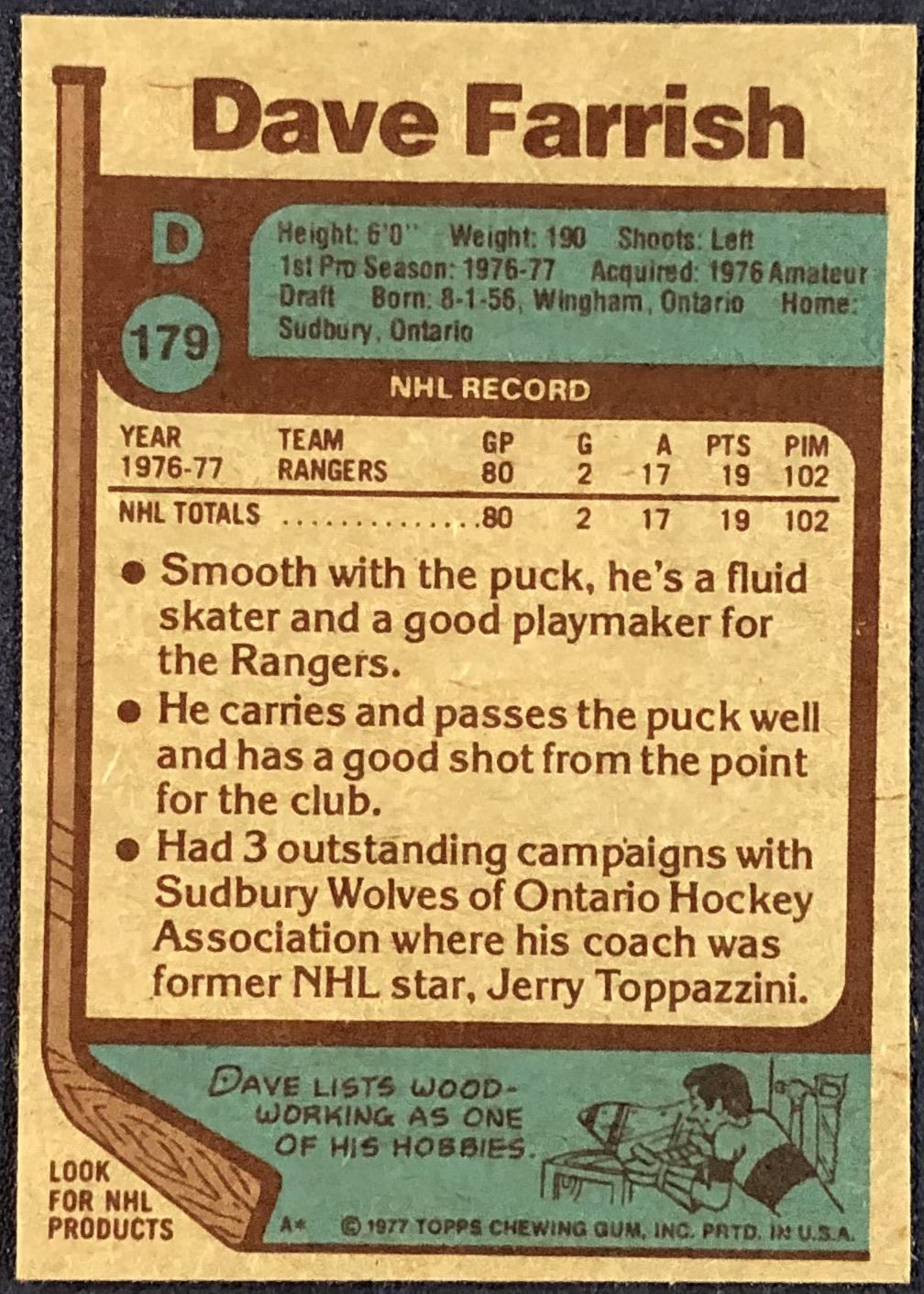 Card #179 NHL. Hockey, vintage, rookie