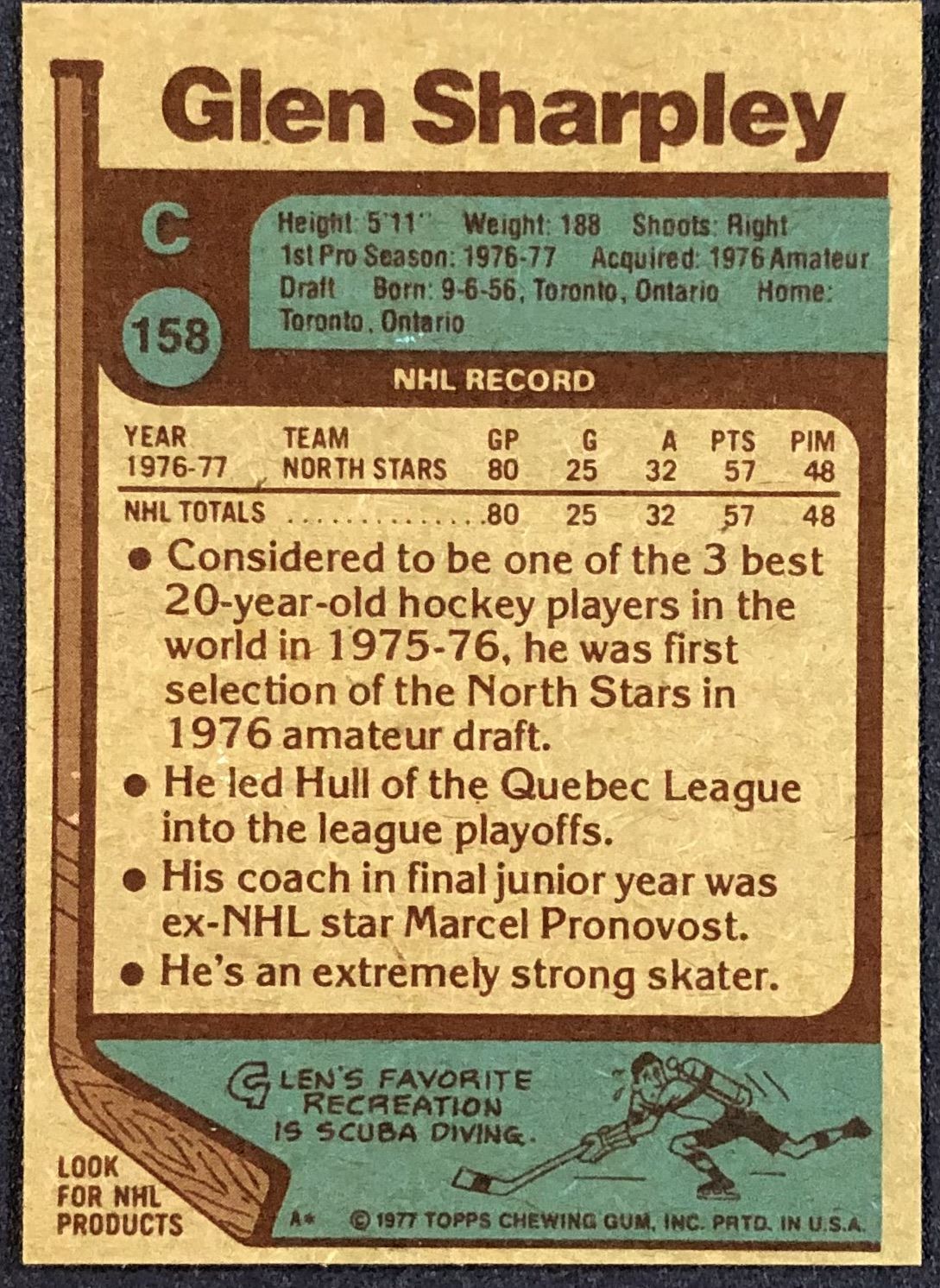 Card #158 NHL. Hockey, vintage, rookie