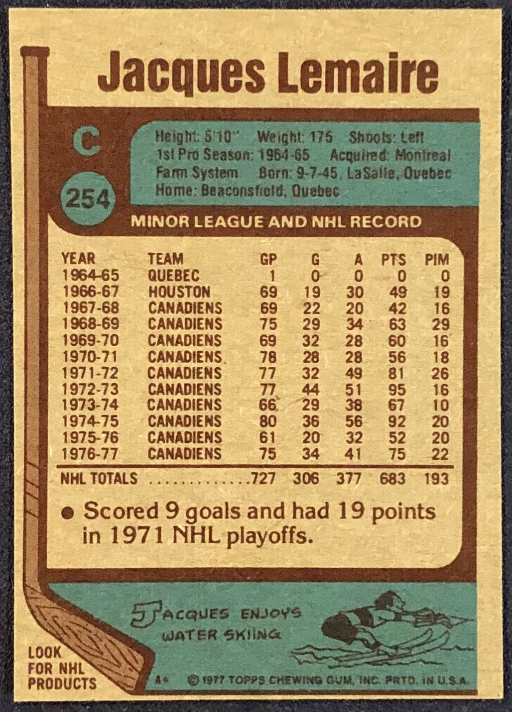Card #254 NHL, hockey, vintage, hall of fame