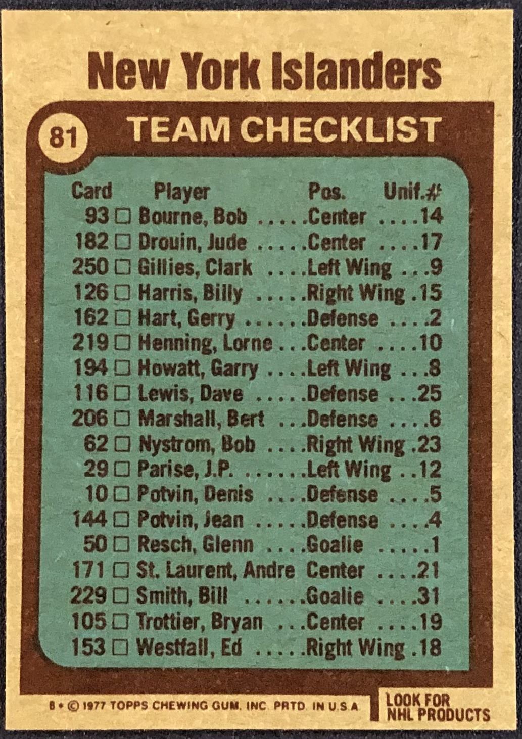 Card #81 NHL. hockey, vintage