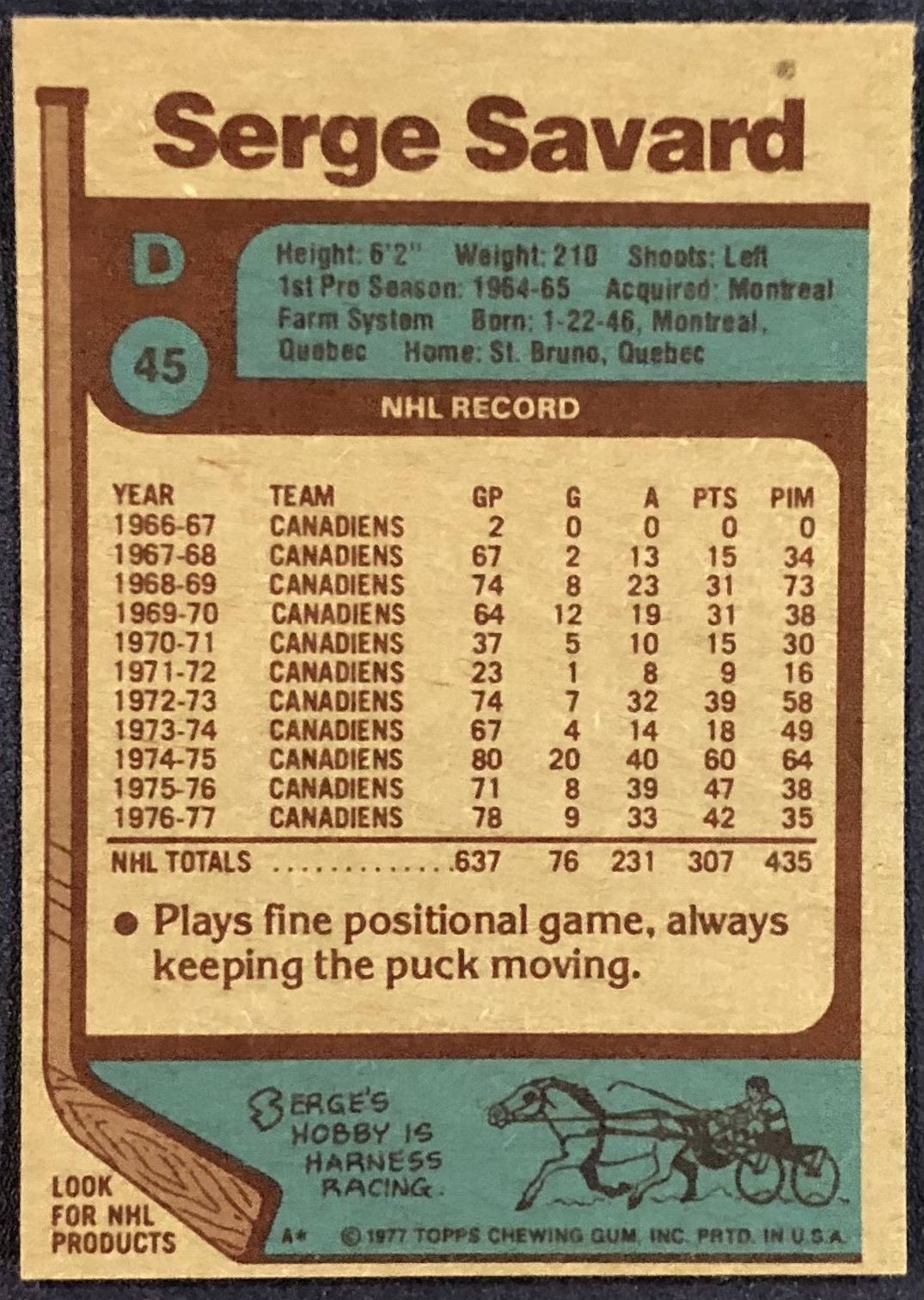 Card #45 NHL, hockey, vintage, hall of fame
