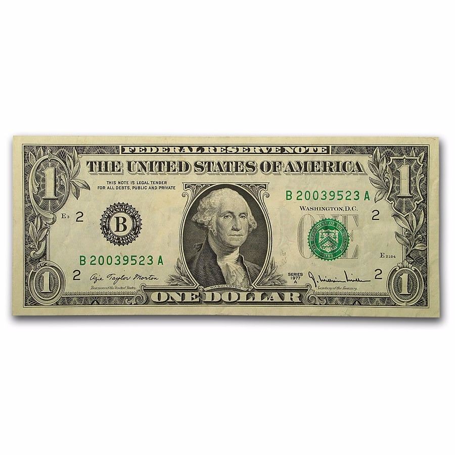 One 1977-A $1 Offset Print Federal Reserve Note.