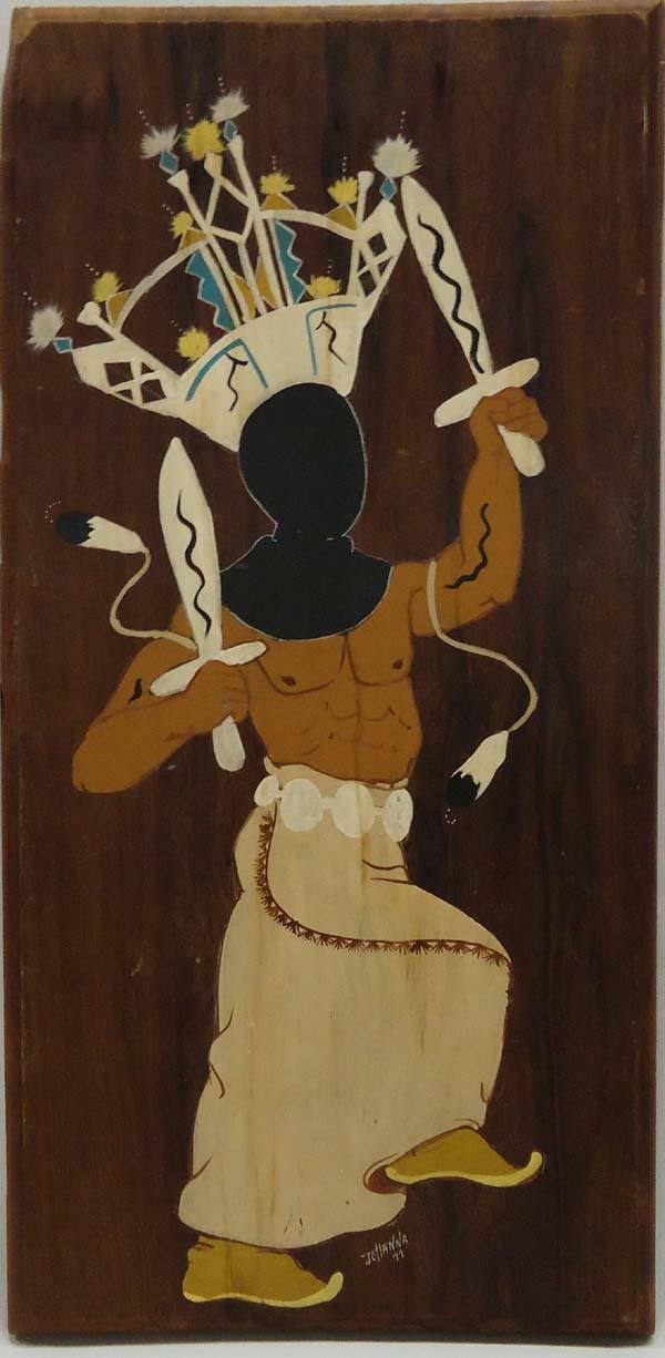 1977 Apache Gan Dancer Painting On Board By JoHanna. Measures approx. 22 1/2''H x 11. SHI $25.