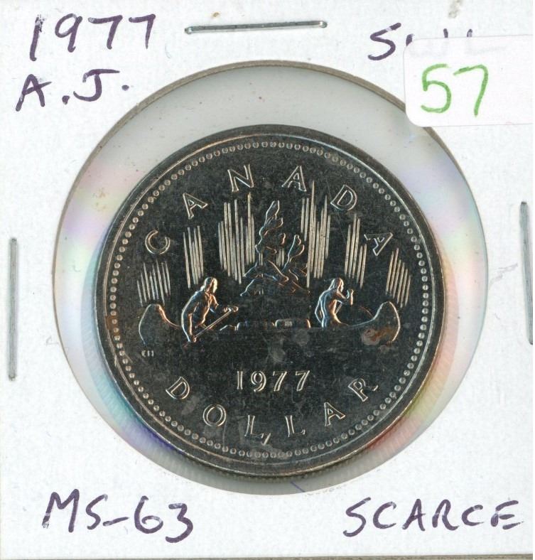 1977 Attached Jewel Short Water Lines Nickel Dollar. MS-63. Scarce.