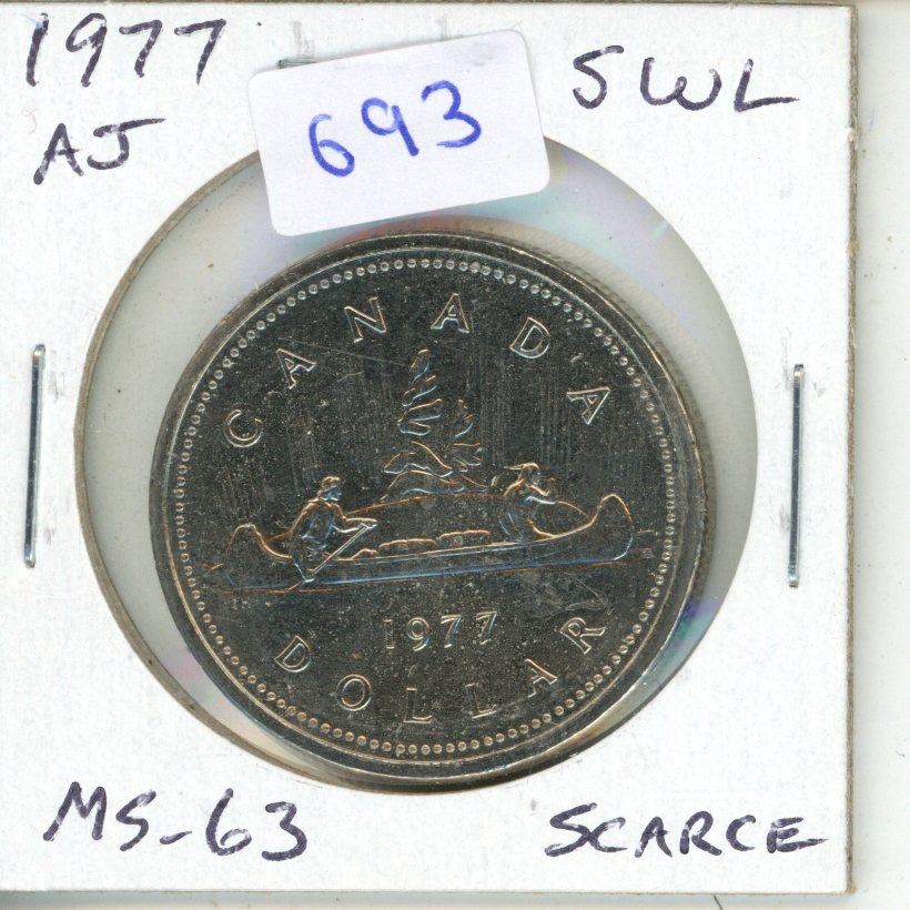 1977 Attached Jewel Short Water Lines Nickel Dollar. MS-63. Scarce.