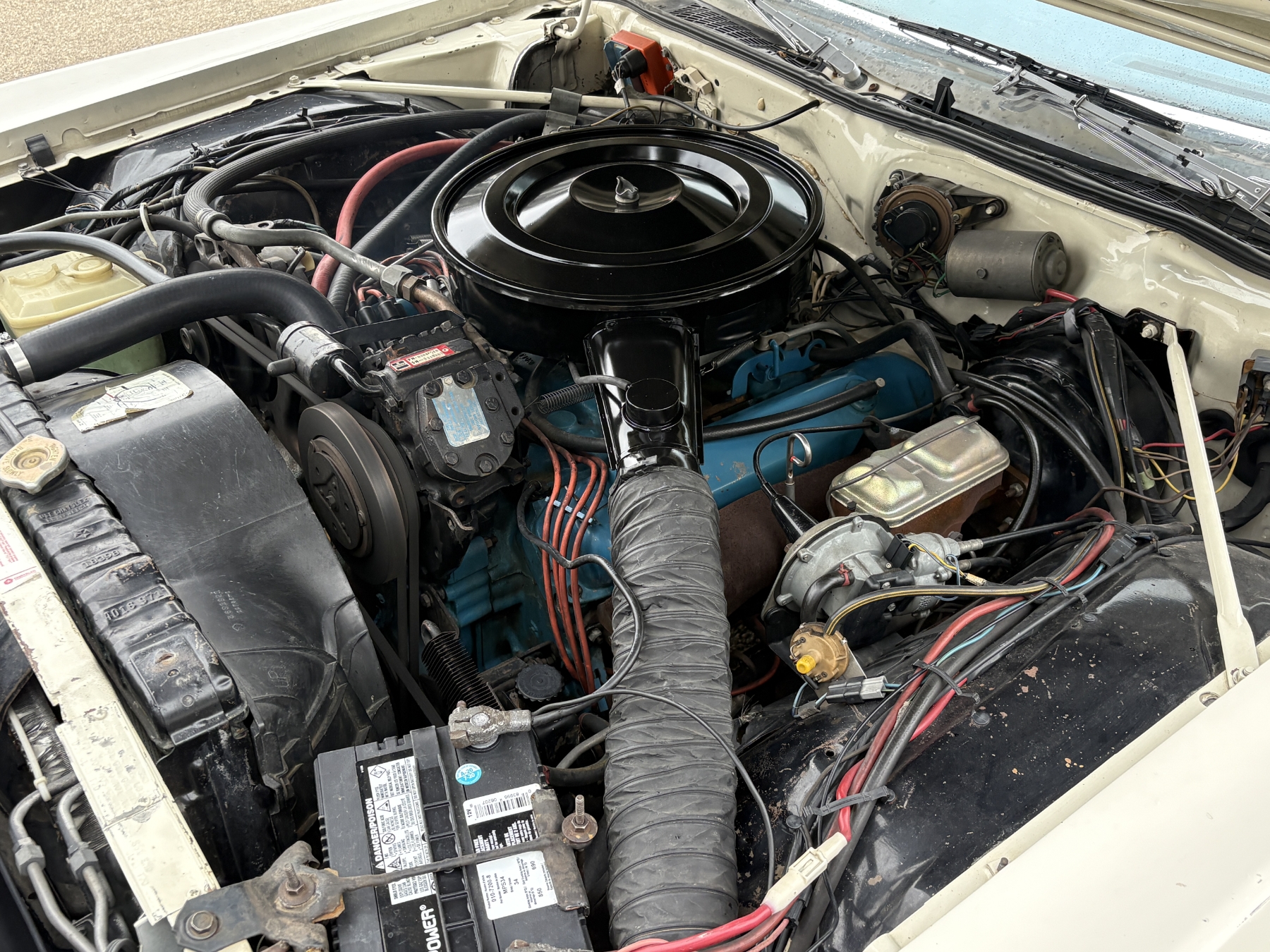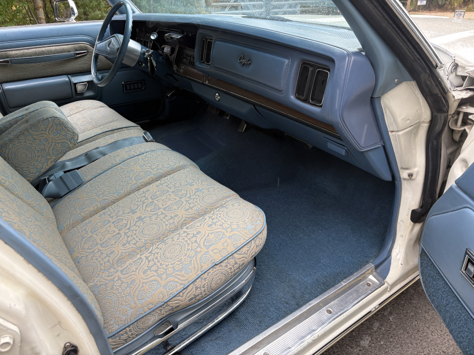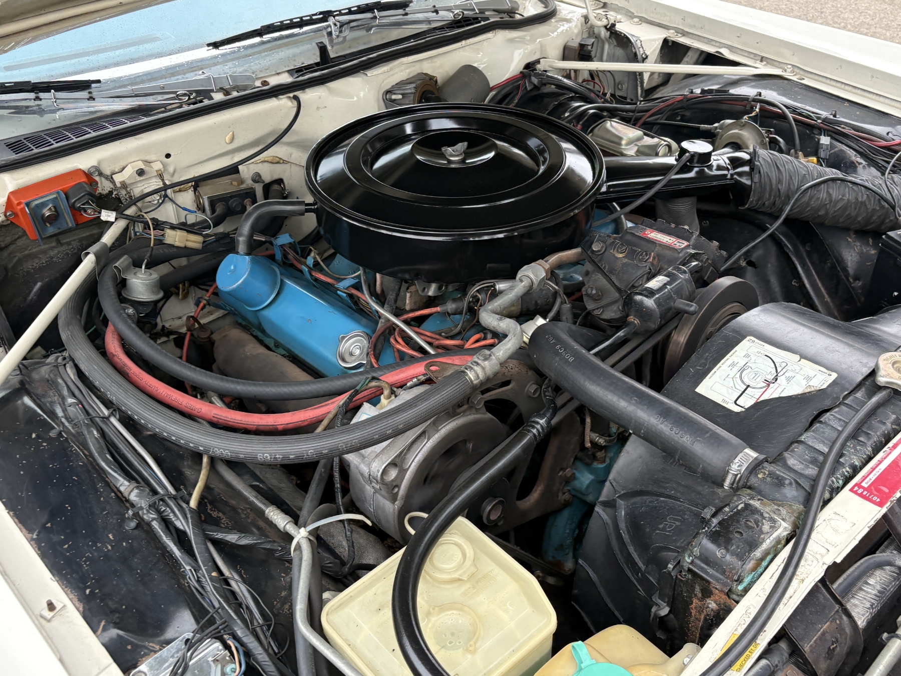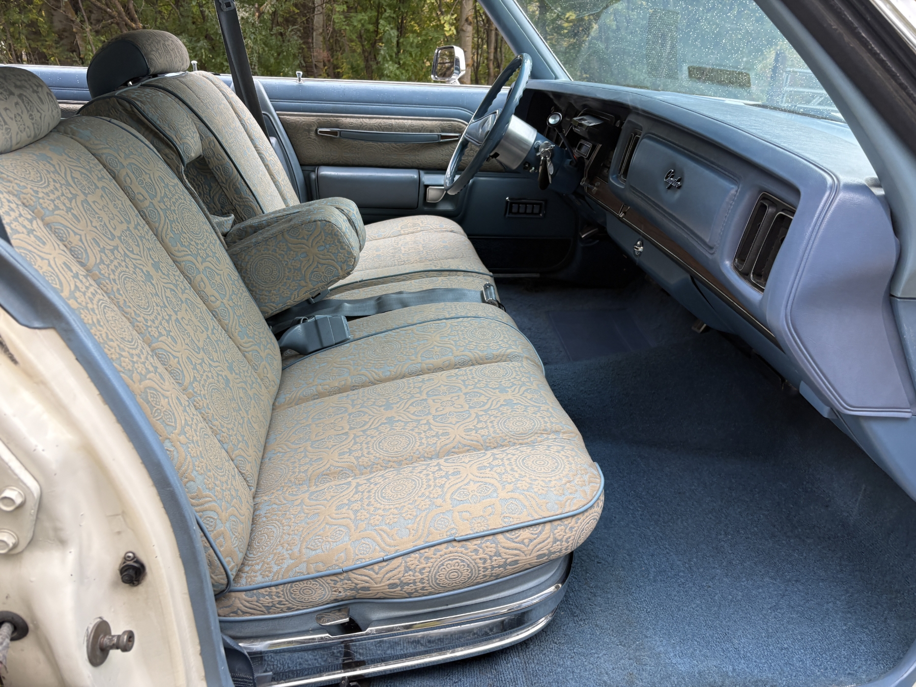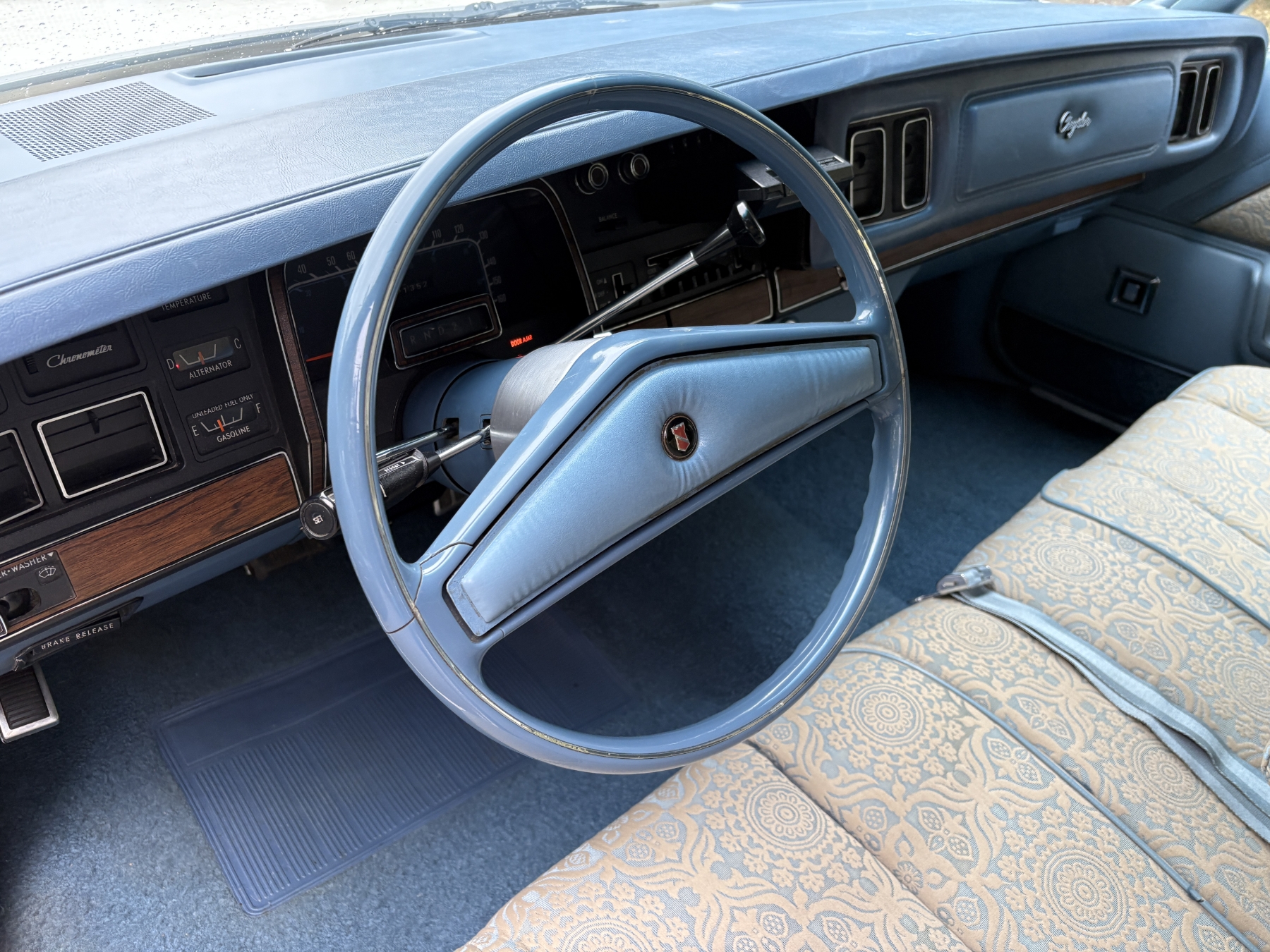One previous owner. This vehicle has spent extended periods in indoor storage and has never been winter driven. Engine: 440 CID V8, Fuel: 4 BBL, Automatic transmission. Features include air conditioning, power windows, and a power driver’s seat. The odometer was changed from miles to kilometres at 40,177 miles (64,658 km, as pictured). Current odometer: 21,352 km. Total mileage: 86,111 kms. Alberta owned. Original window sticker from dealer with owners manual.