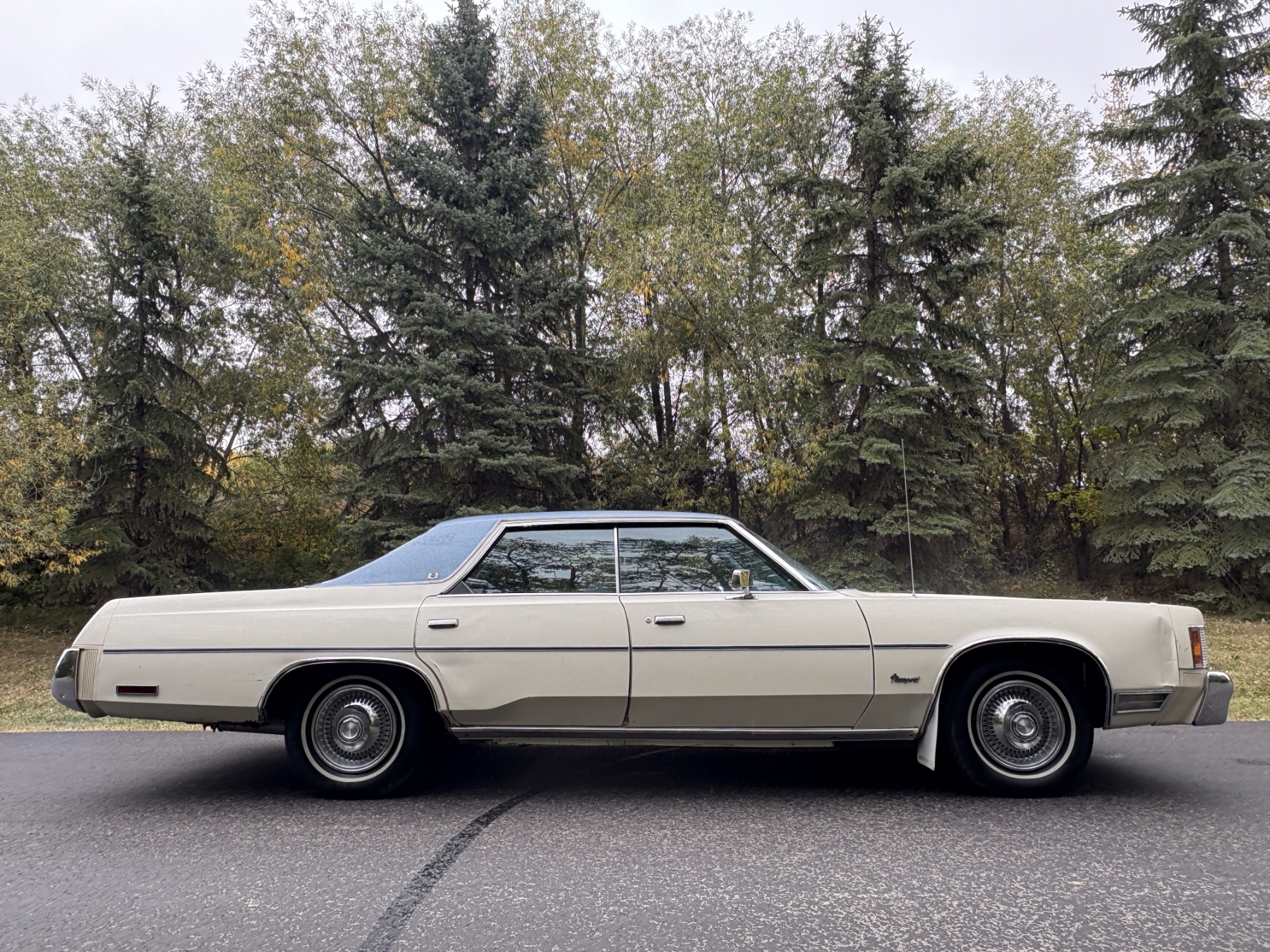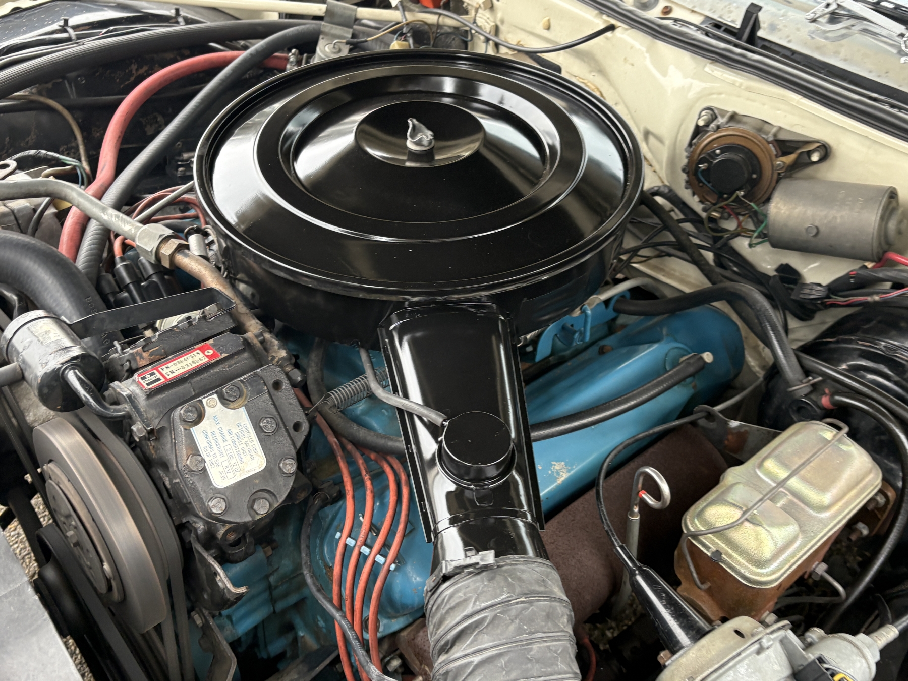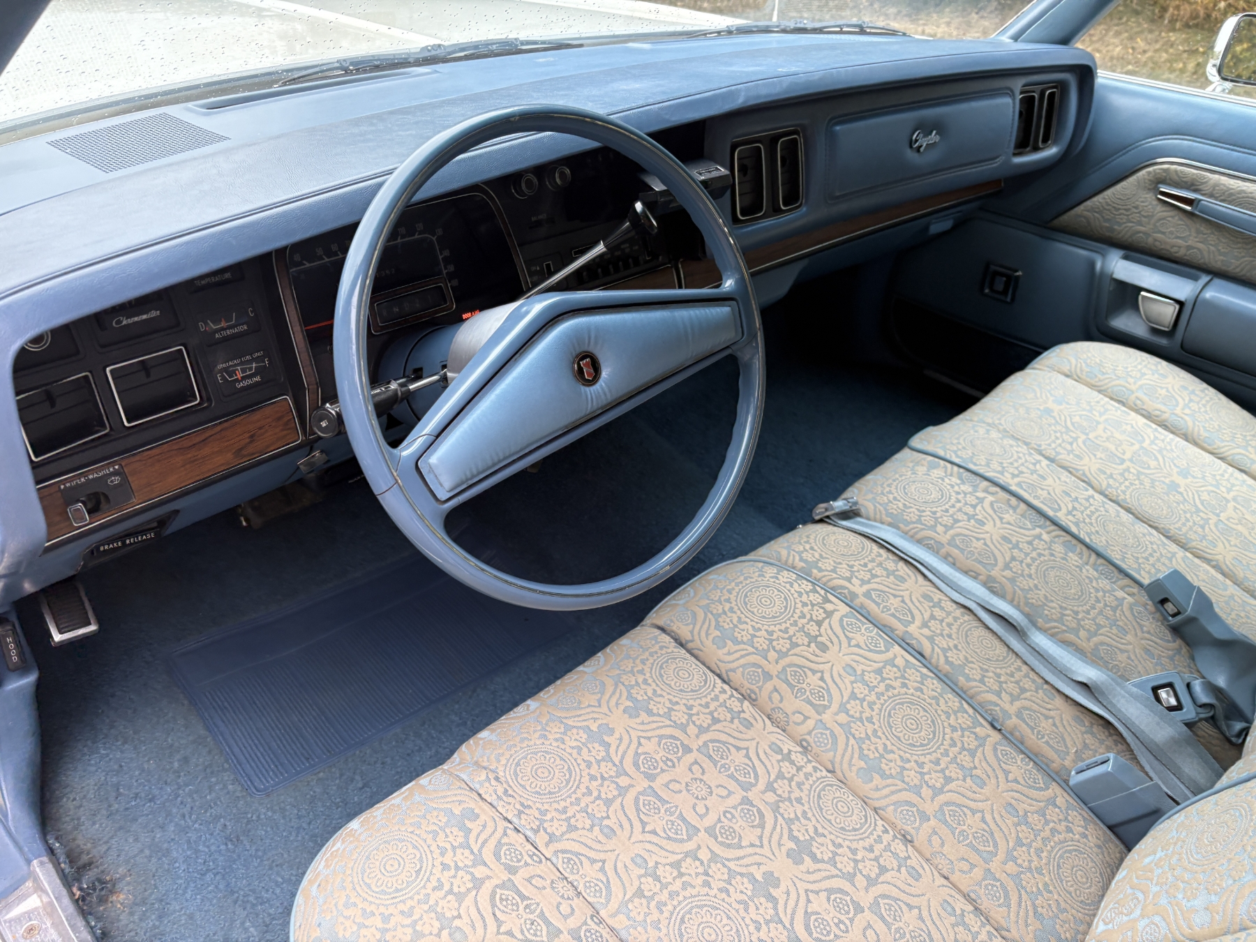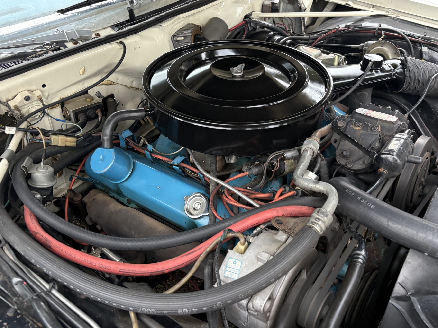 One previous owner. This vehicle has spent extended periods in indoor storage and has never been winter driven. Engine: 440 CID V8, Fuel: 4 BBL, Automatic transmission. Features include air conditioning, power windows, and a power driver’s seat. The odometer was changed from miles to kilometres at 40,177 miles (64,658 km, as pictured). Current odometer: 21,352 km. Total mileage: 86,111 kms. Alberta owned. Original window sticker from dealer with owners manual.