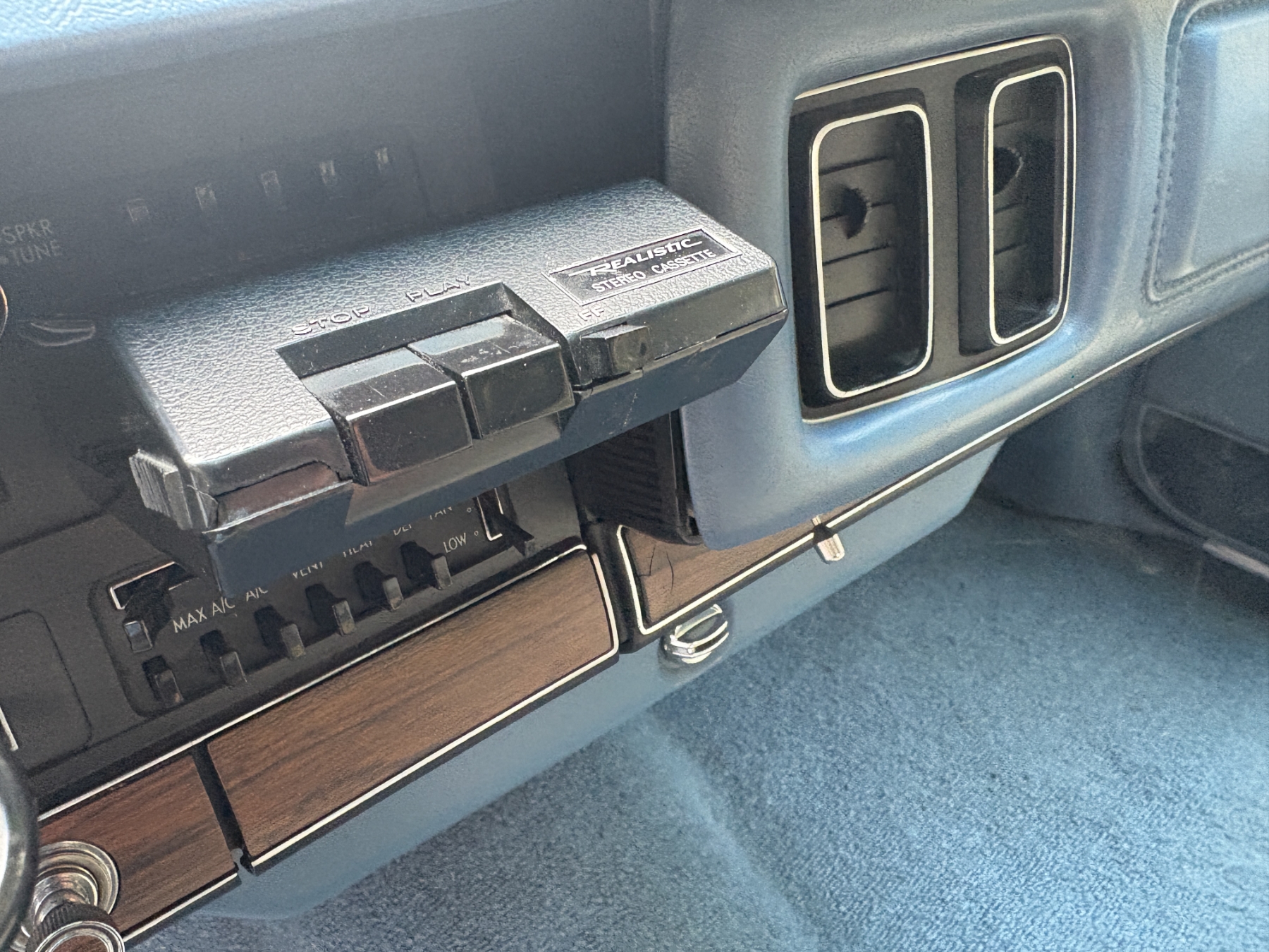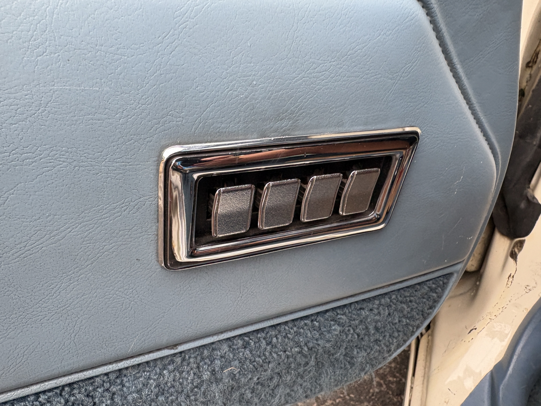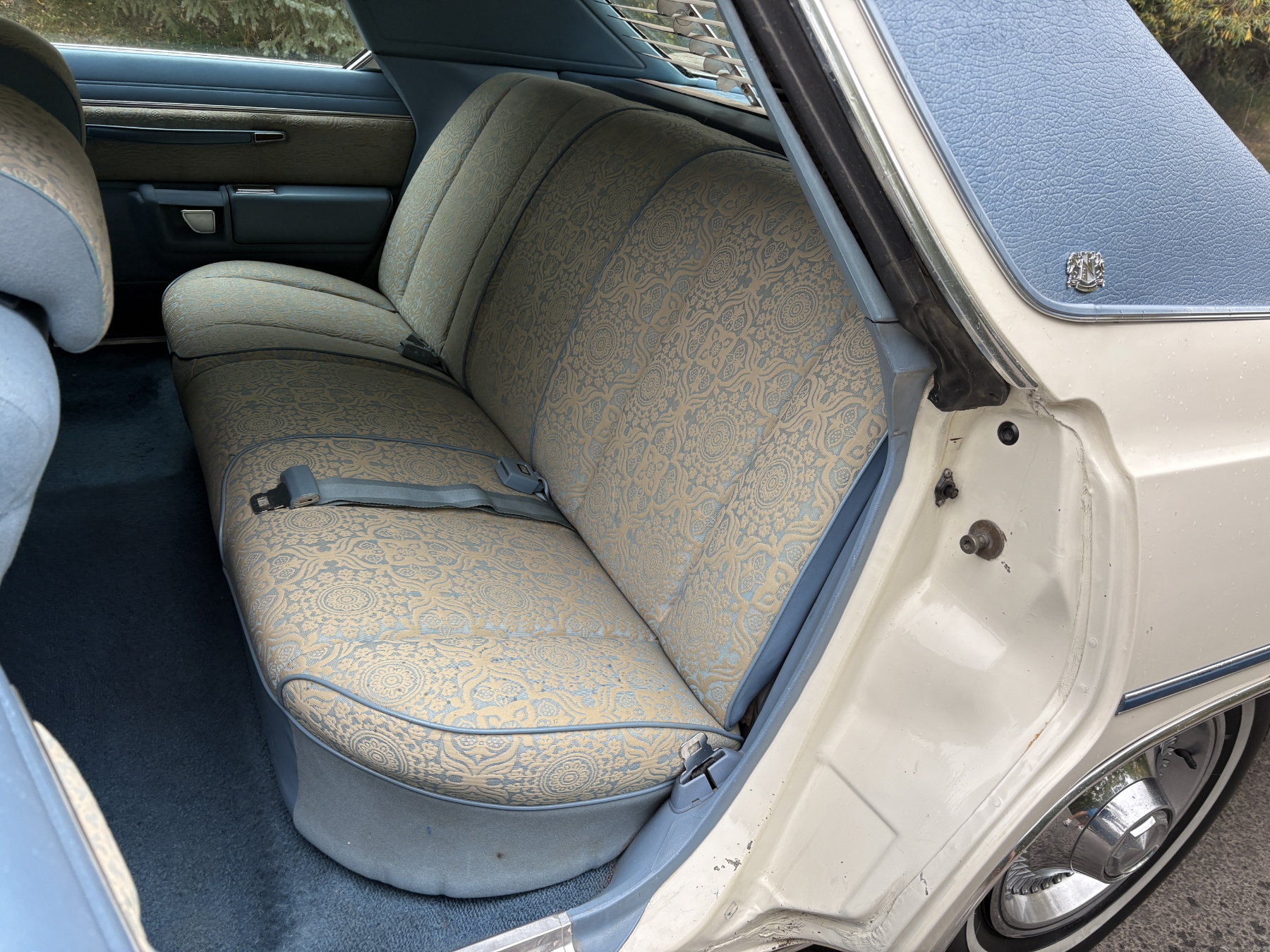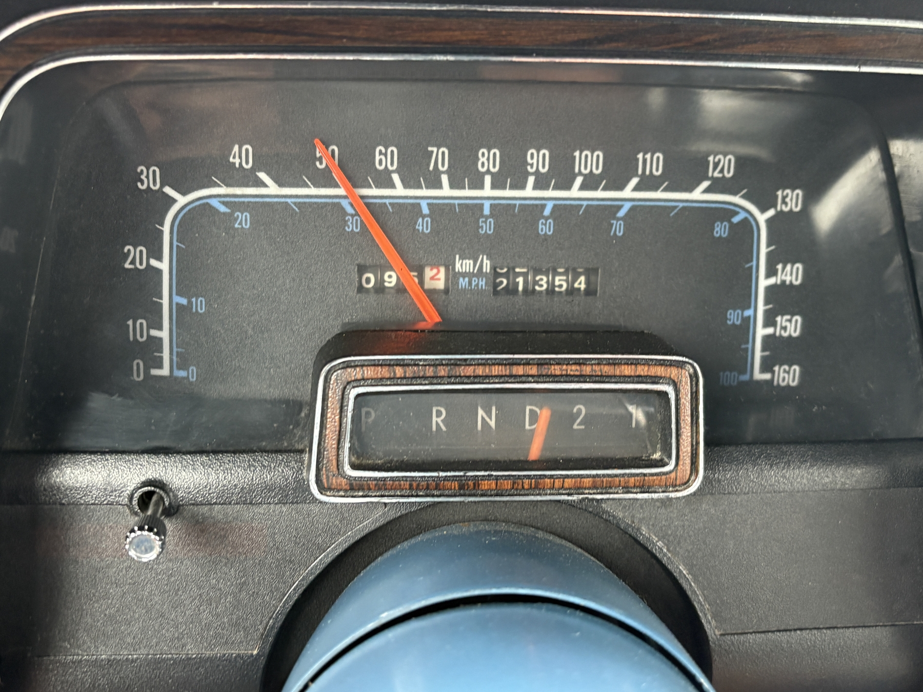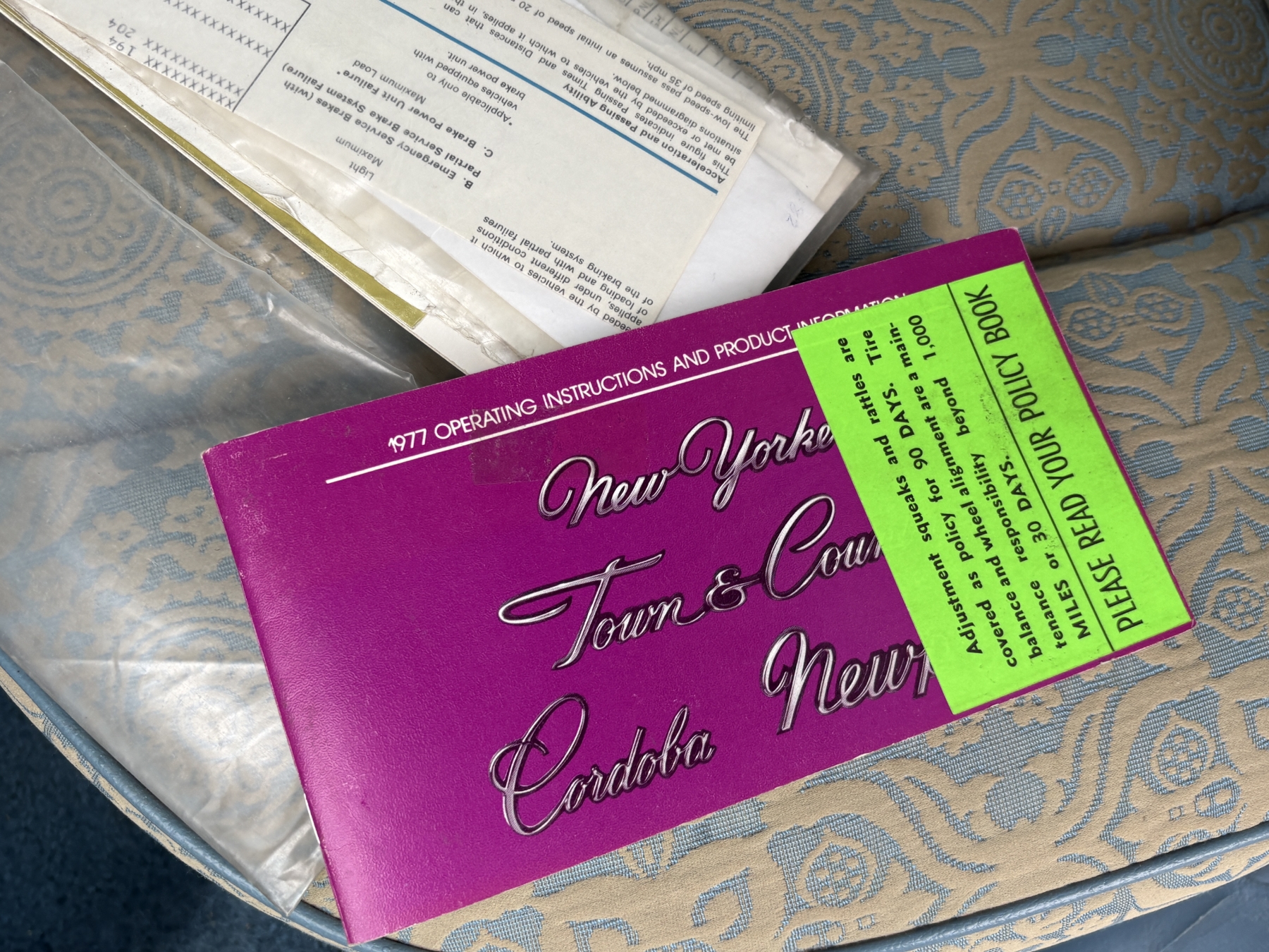 One previous owner. This vehicle has spent extended periods in indoor storage and has never been winter driven. Engine: 440 CID V8, Fuel: 4 BBL, Automatic transmission. Features include air conditioning, power windows, and a power driver’s seat. The odometer was changed from miles to kilometres at 40,177 miles (64,658 km, as pictured). Current odometer: 21,352 km. Total mileage: 86,111 kms. Alberta owned. Original window sticker from dealer with owners manual.