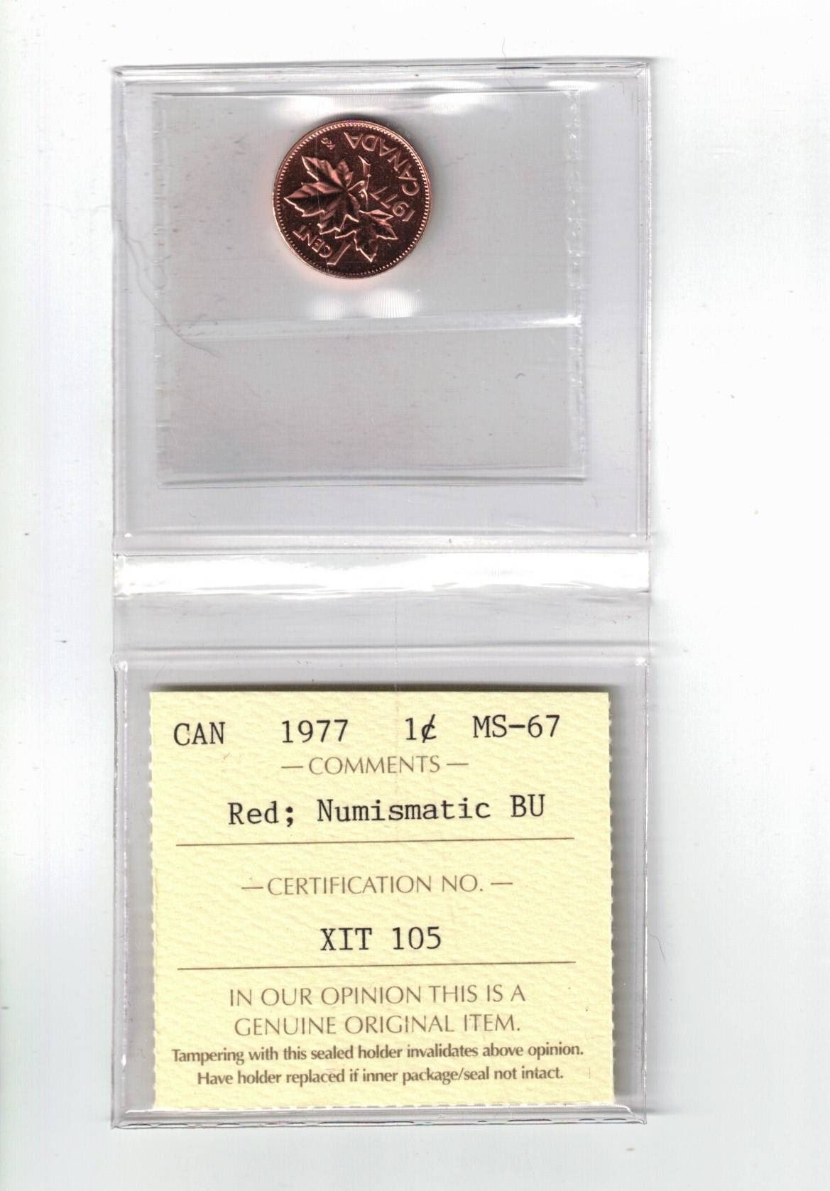 1977 Canada 1¢; Red, NBU, Certified ICCS MS67