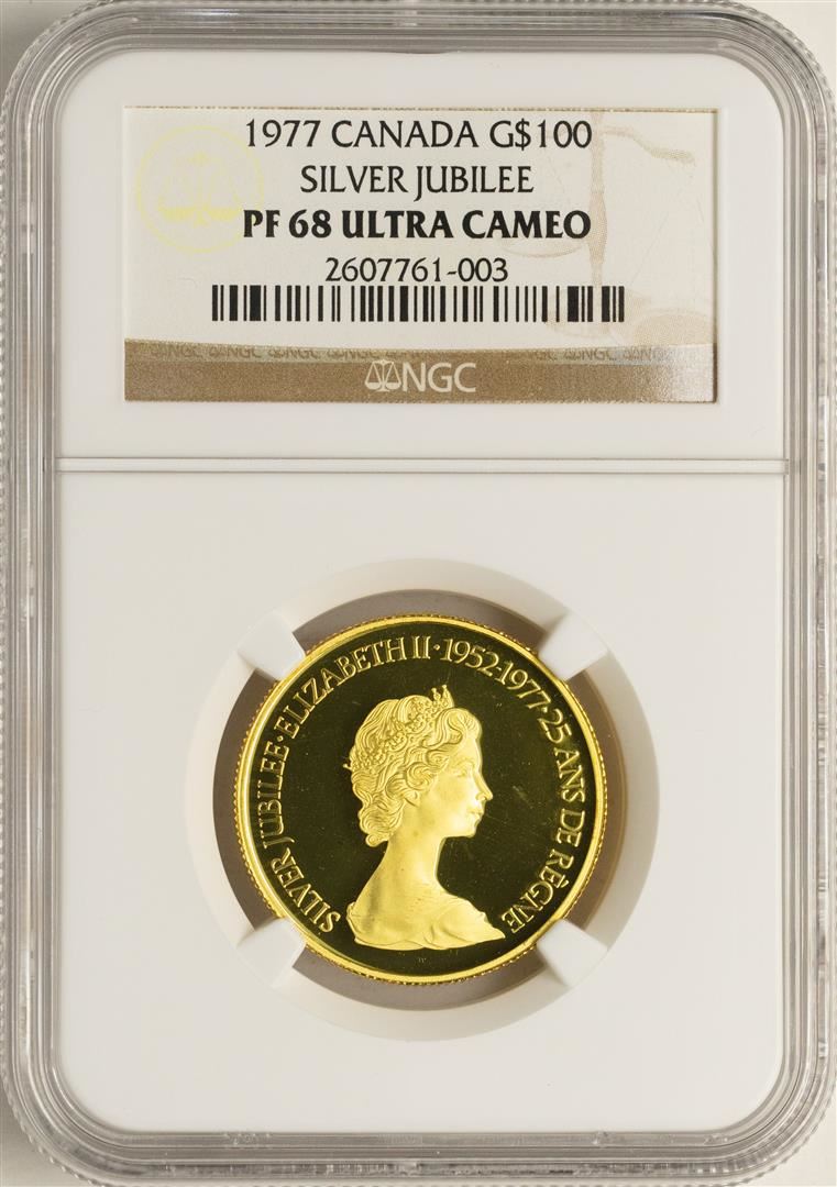 One 1977 Canada $100 Silver Jubilee Commemorative Gold Coin PCGS PF68 Ultra Cameo. PCGS Graded.