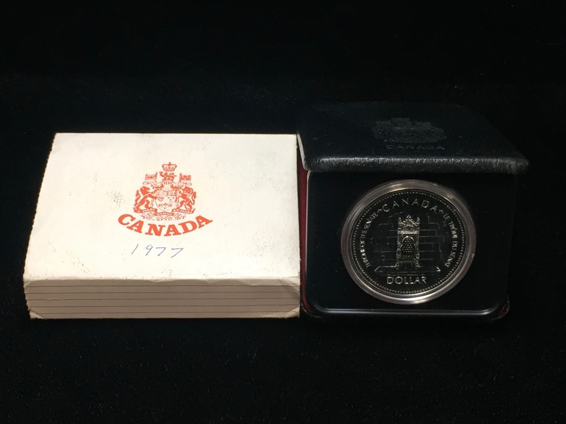 Lot 16; Royal Canadian Mint, 1977 Canada Silver $1 Throne of the Senate Queen's Silver Jubilee Commemorative Case Dollar, Specimen Finish, Silver .500, RCM Packaging
