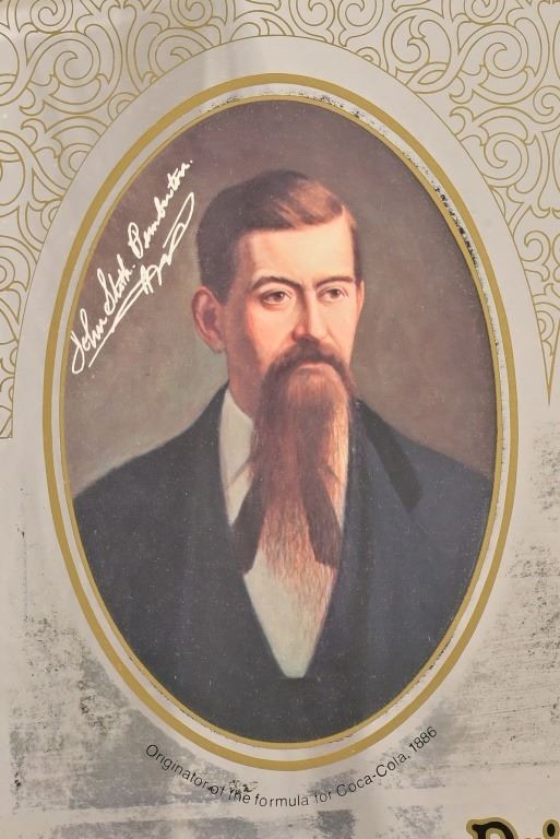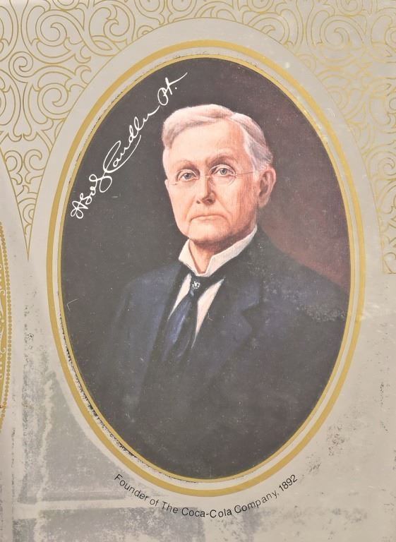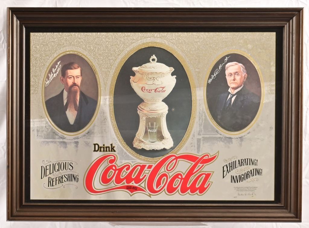 Unique and limited 1st edition of 1000 issued by the archives. 26.25" x 36 " framed Coca Cola mirror lithograph with photos of the originator of the formula 1886, and founder 1892.