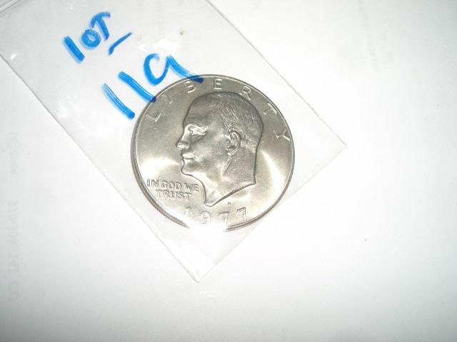 1977-D EISENHOWER "IKE" DOLLAR *NICE EARLY MS HIGH GRADE US DOLLAR*!! EISENHOWER DOLLAR CAME OUT OF SAFE!! ***Coin, Currency & All Items Listed in this auction - Grades, Conditions and Values are not Safe Deposit Coins LLC Responsibilty. Grades, Condition and Values are determined by Consigner(s) & Buyers ONLY