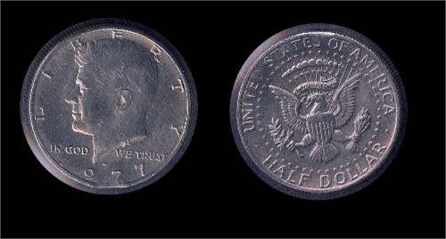 1977-D Kennedy Half w/clip; Unusual on coin this size!