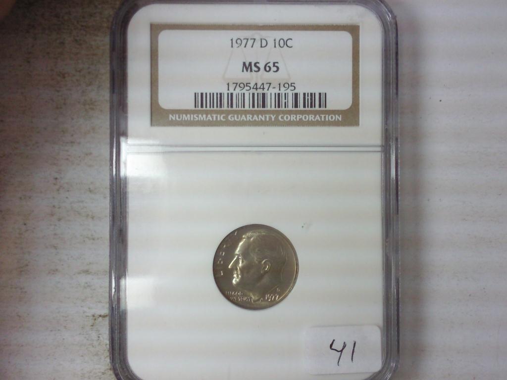 1977-D ROOSEVELT DIME NGC MS65