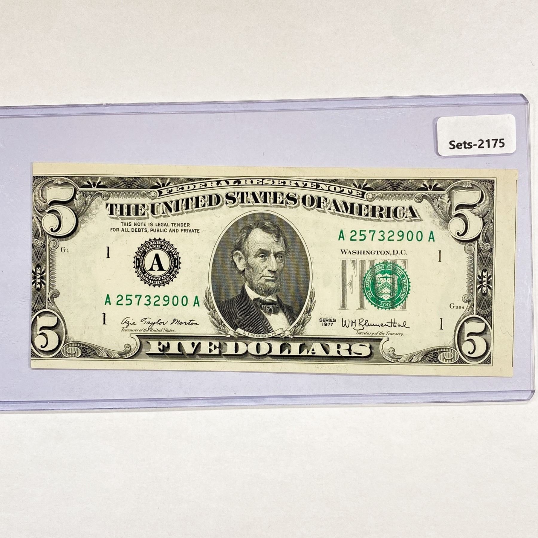 1977 Error $5 Fed. Reserve Note