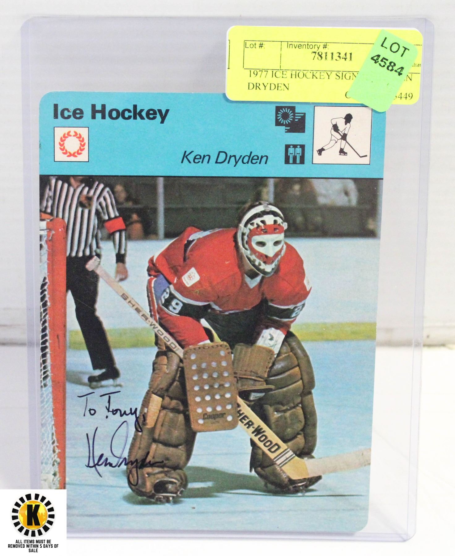 1977 ICE HOCKEY SIGNED BY KEN DRYDEN