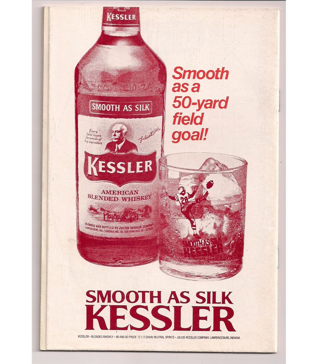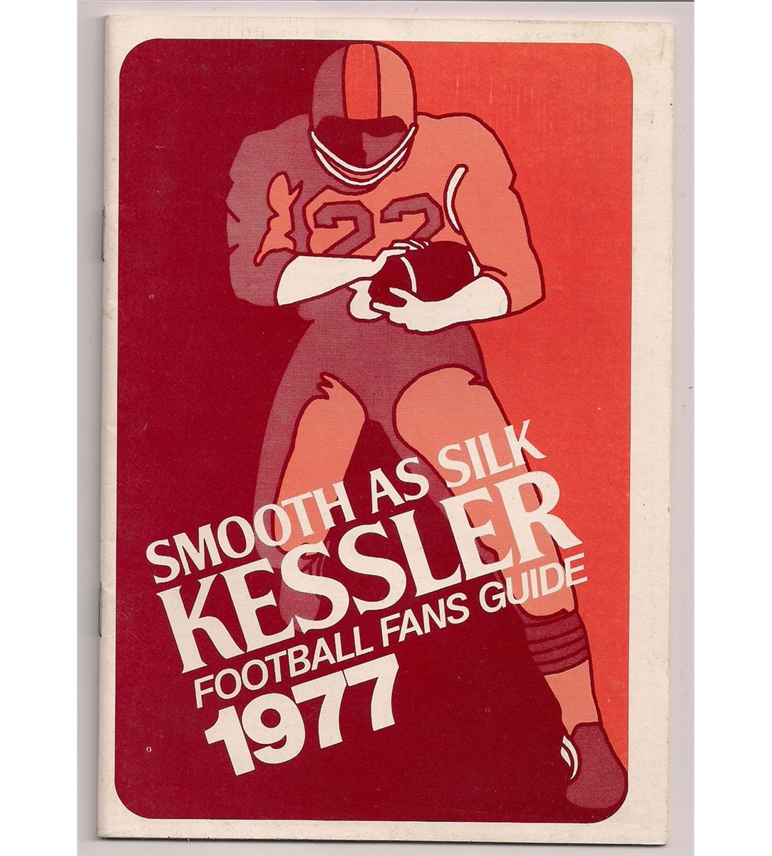 1977 Kessler Football Fans Guide. This 32-page booklet is full of information and schedules for both the Pro and College teams of 1977. It was an adverising booklet for Smooth As Silk Kessler Blended Whiskey. Booklet is in Excellent Condition.