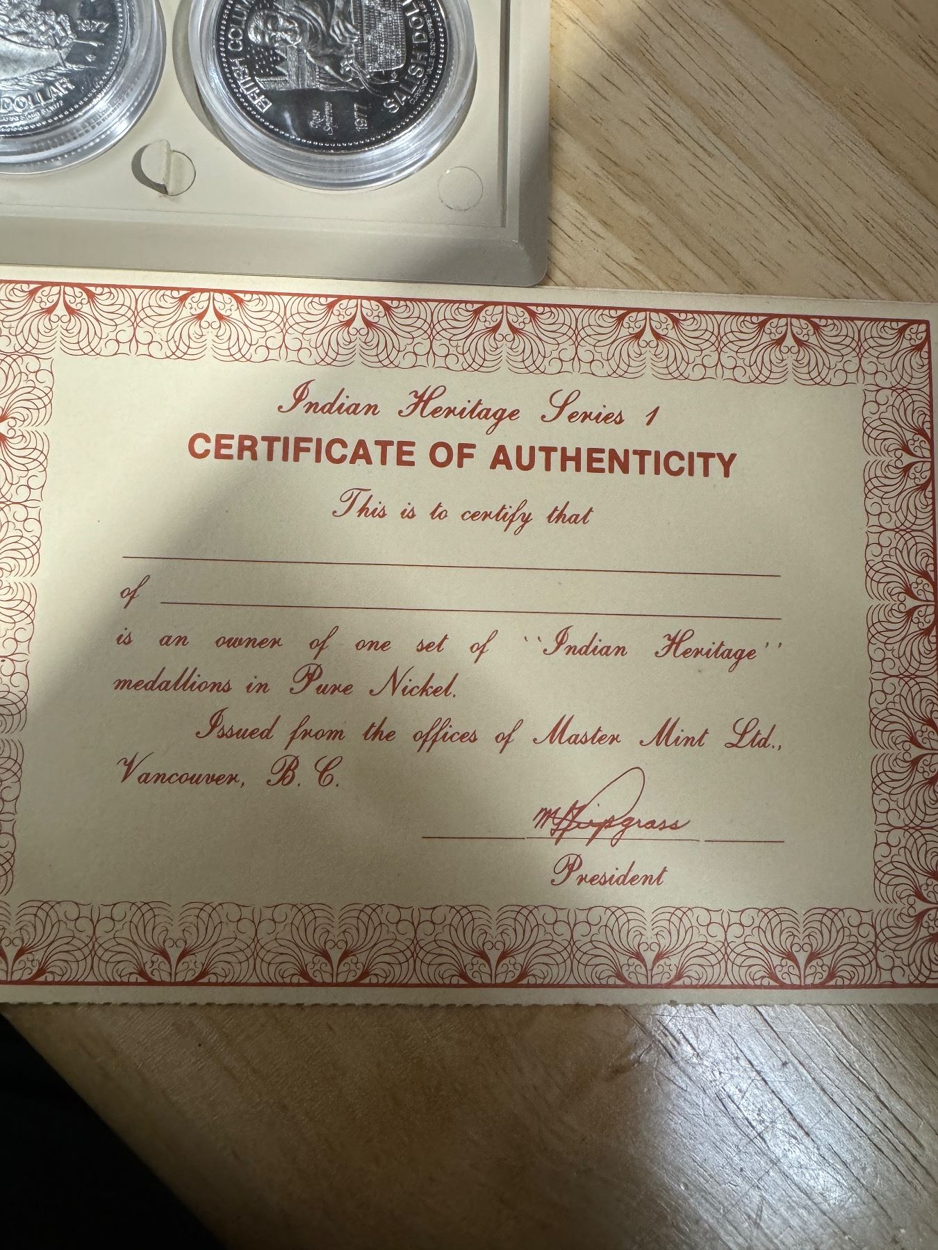 1977 Master Mint LTD Vancouver BC 5 Major Tribal groups of BC pure nickle